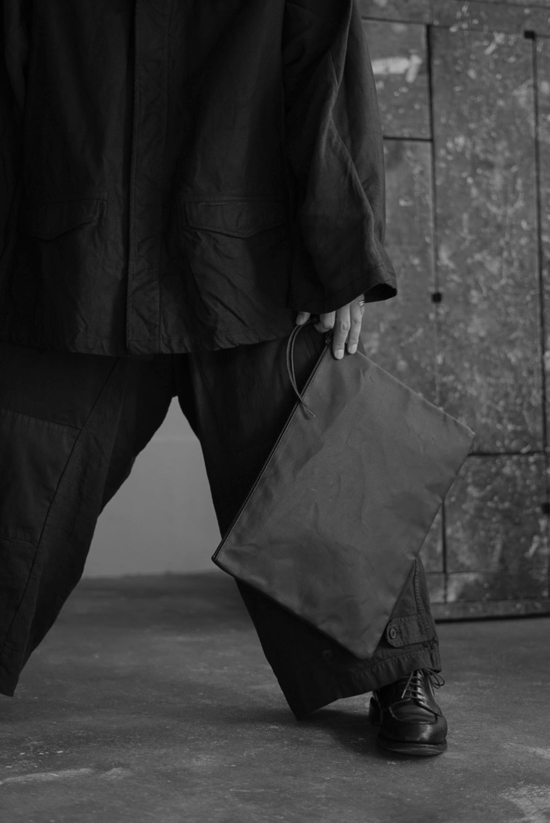 "VINCENT JALBERT"のパートナー、YVES ANDRIEUXの手掛けるアイテム。コットンキャンバスファブリックにシルクスクリーンを用い、ブラックカラーをベタ塗りでプリント。無機質でマットな質感を纏います。僅かに掠れたテクスチャーはシルクスクリーンならでは。ヘビーウォッシュを施した、魅力的なフェードを感じるヘビーリネンライニング。