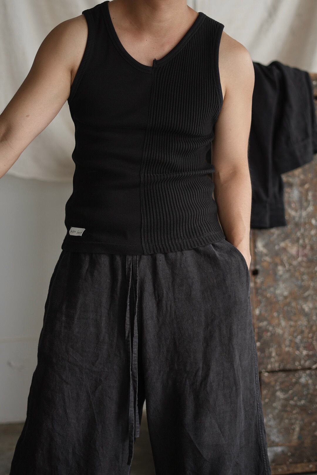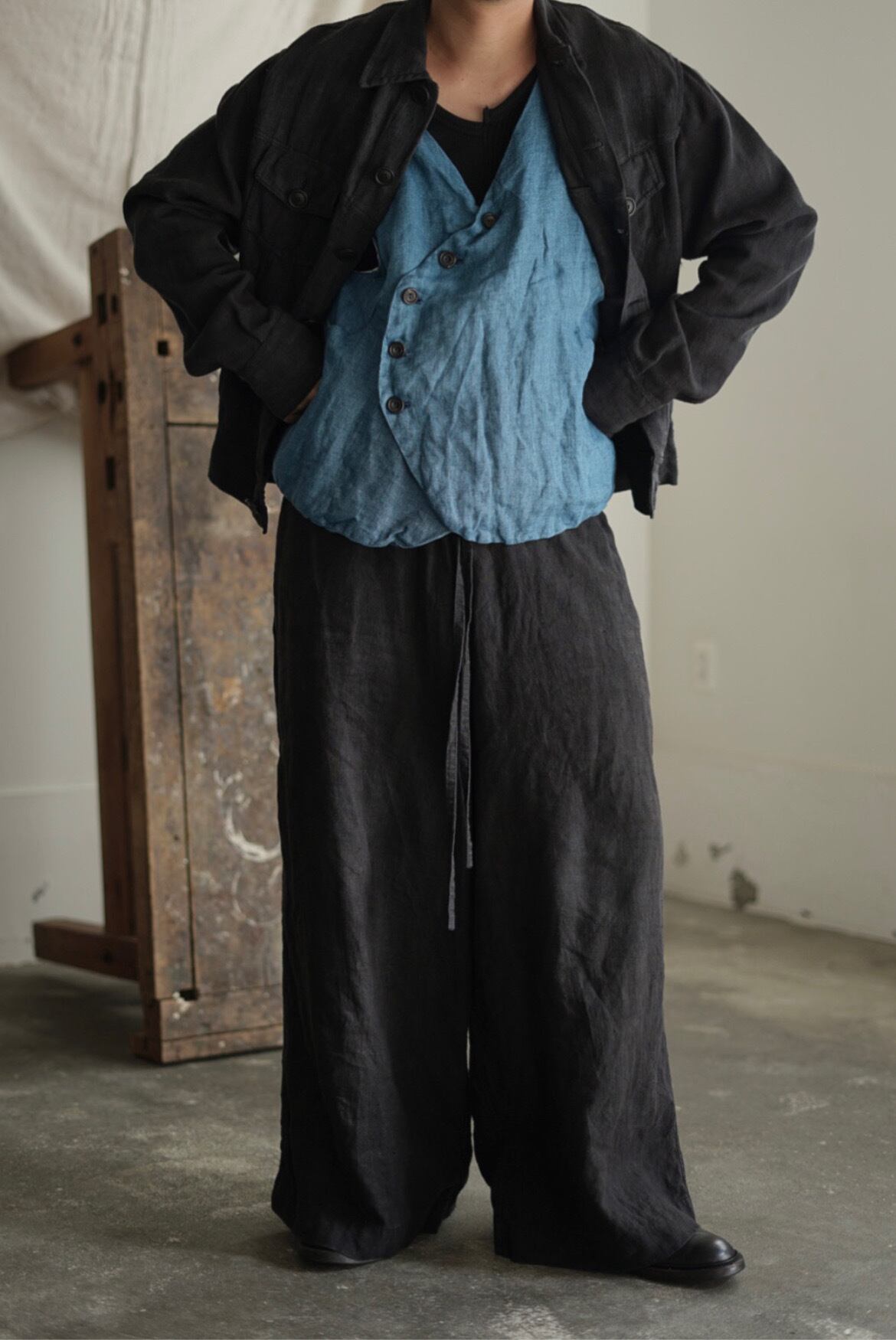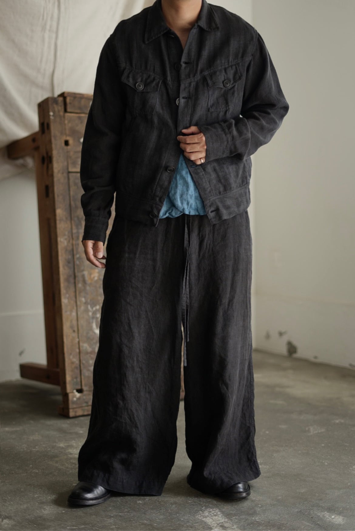 VINCENT JALBERT - VINTAGE FRENCH LINEN LARGE PANTS - BLACK ↓