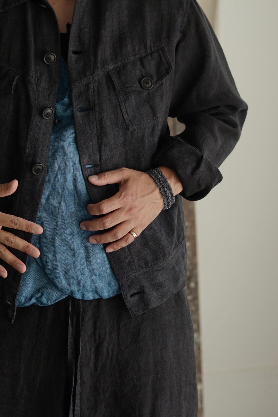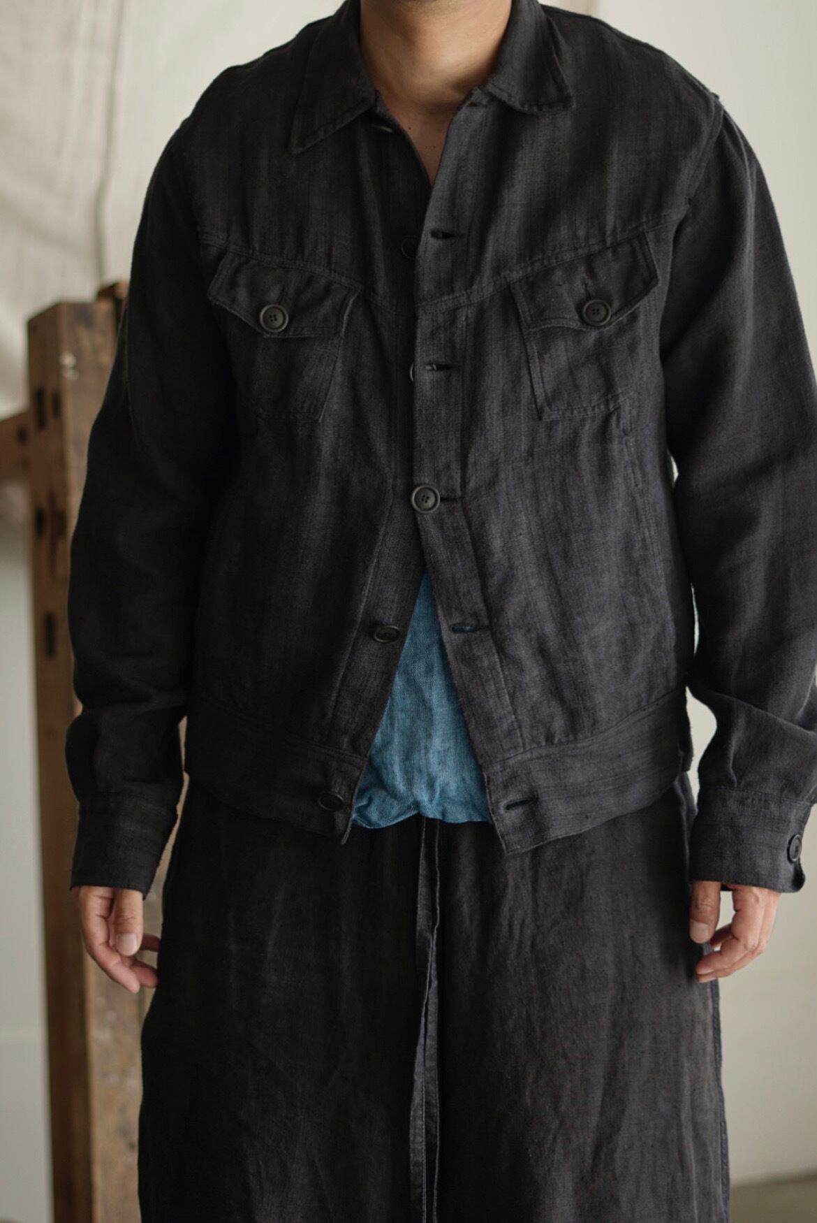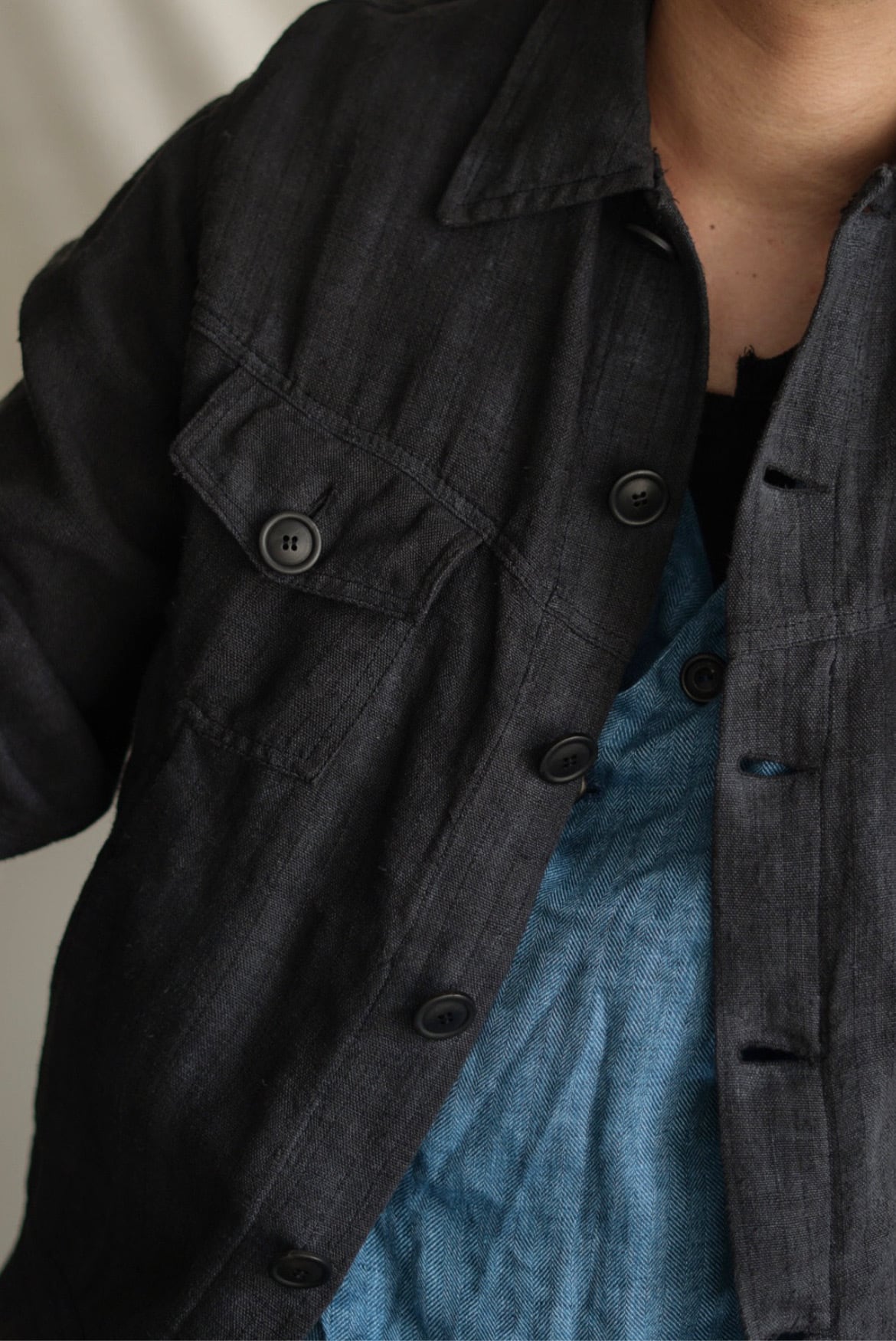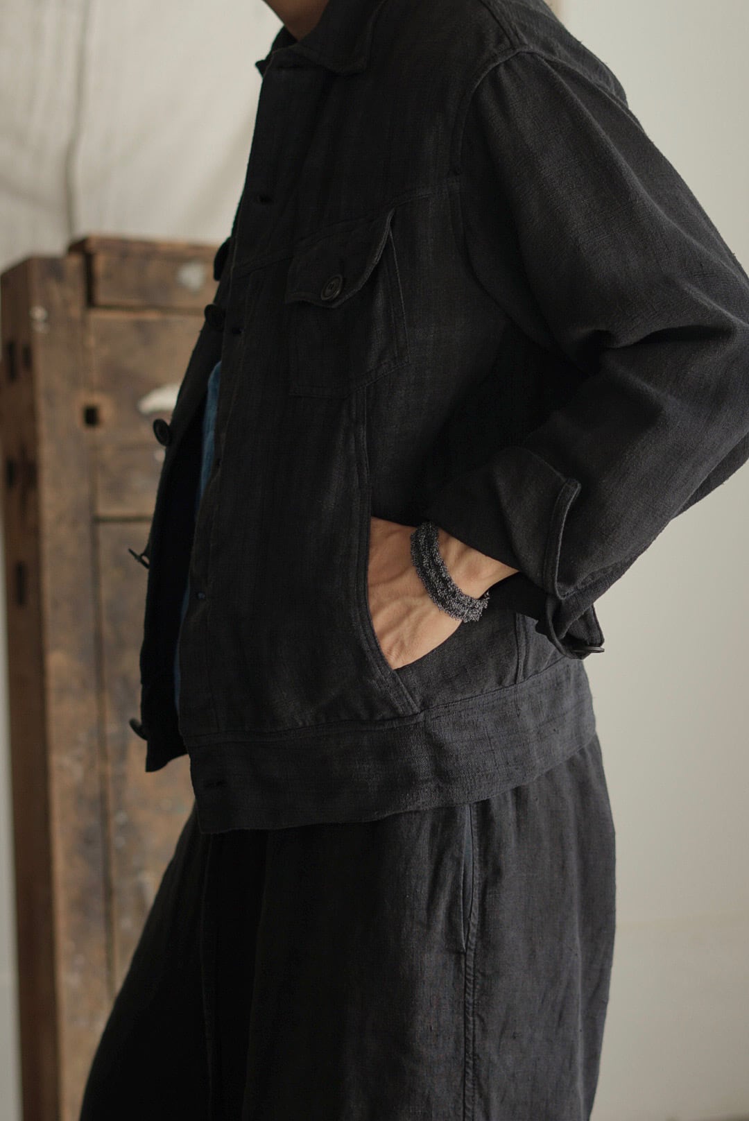 VINCENT JALBERT - VINTAGE FRENCH LINEN DENIM TYPE JACKET - BLACK ↓