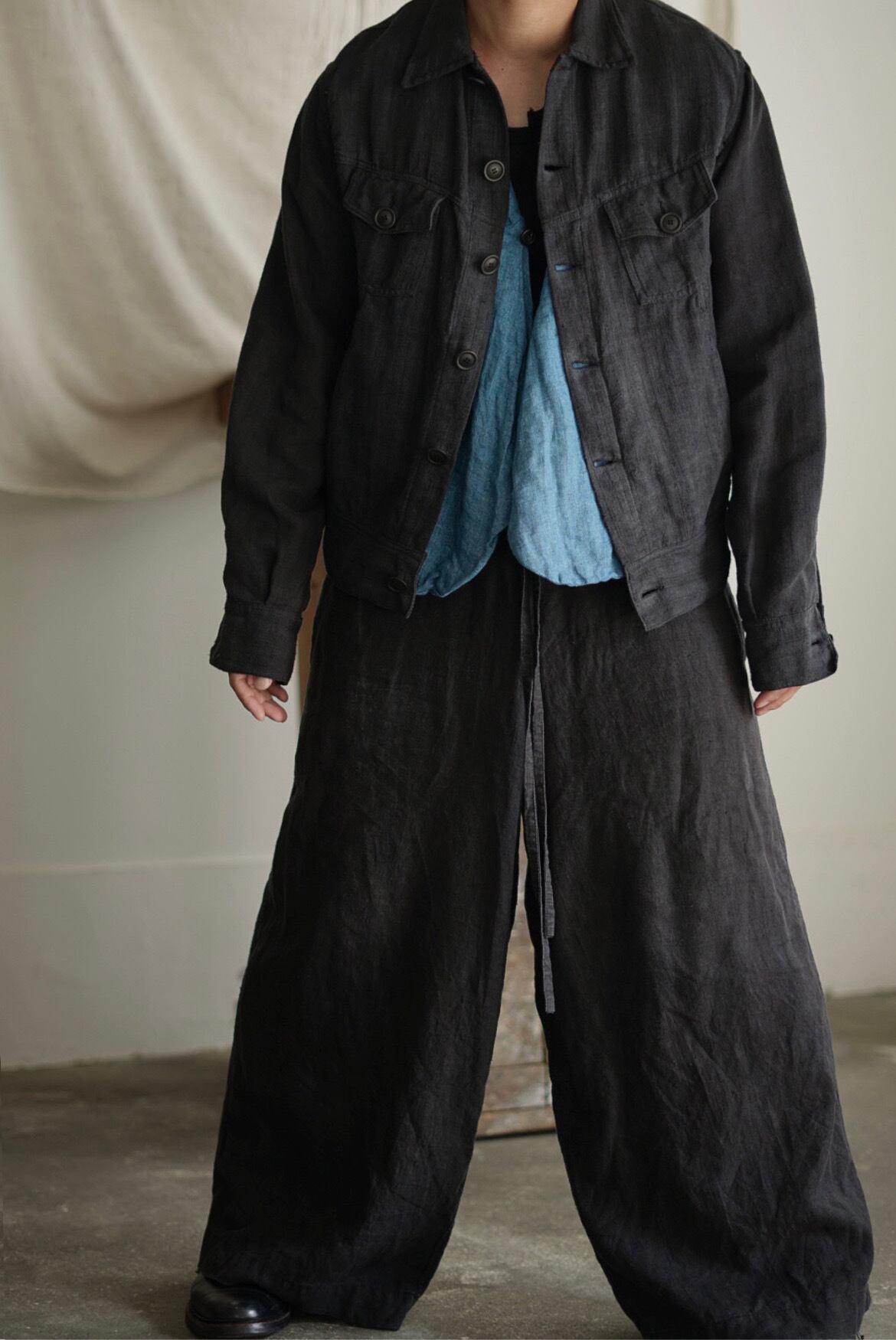 VINCENT JALBERT - VINTAGE FRENCH LINEN LARGE PANTS - BLACK (着用 size L) ↓