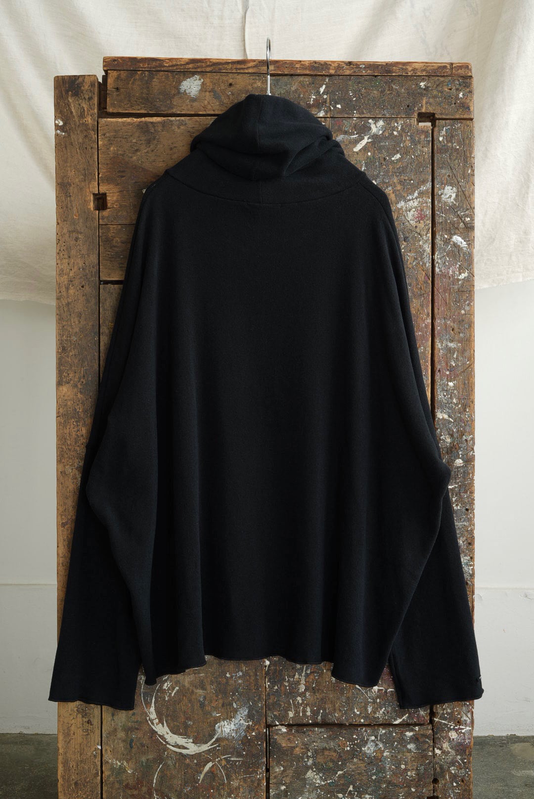 保温力を備えるカットソーライクなビッグビッグタートル。ウールフリーニッティング。「ALBUM DI FAMIGLIA」において、アダルトからキッズコレクションまでレギュラーで使用される、コットン混が気持ち良いもちっとした質感のファブリック。ボリュームのあるオフタートル、身頃と袖のヘムはロック処理、ミニマルでラフなデザイン性。