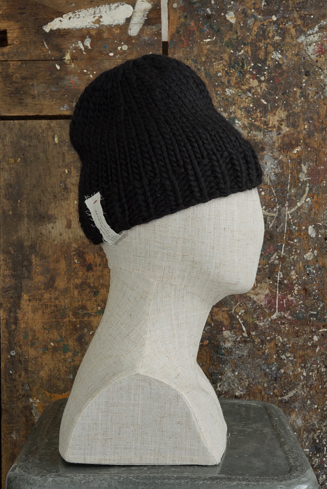コレクションにおいて最上級のファブリックを使用した、アイテム毎にシリアルナンバーを持つラグジュアリーライン「SERIE NUMERATA」。優しくふわりと編み込まれたハンドニットビーニー。折り返しなしのシンプルなデザインながら、ヘム部分の編地に変化を加えることで存在感を生んだモデル。ユニセックスワンサイズ。