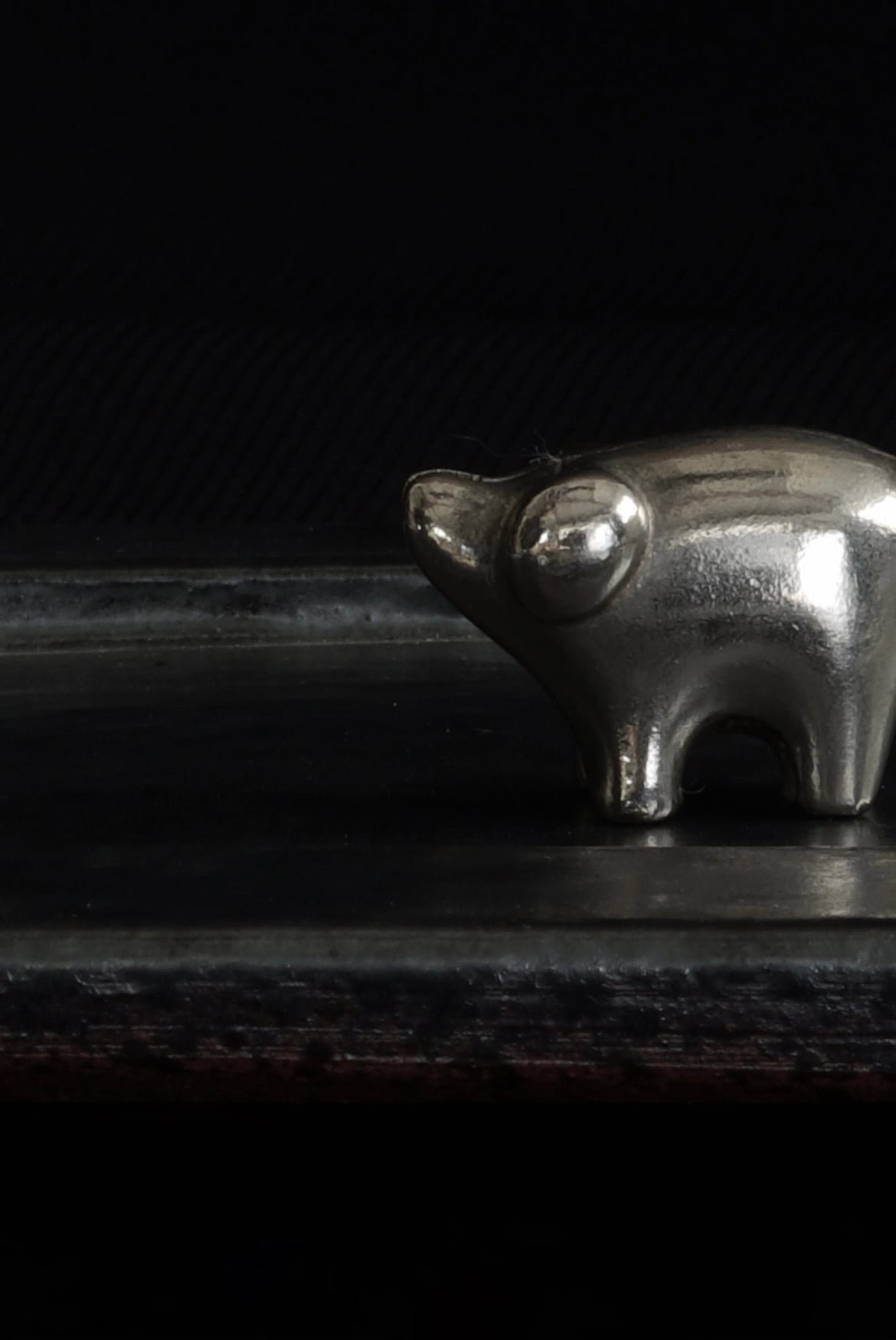 働き者の豚さんです。ブーブーと文句も言わずショップカードを持ち、自立してくれます。パリのブロカントから連れ帰りました。重量を感じる50g。