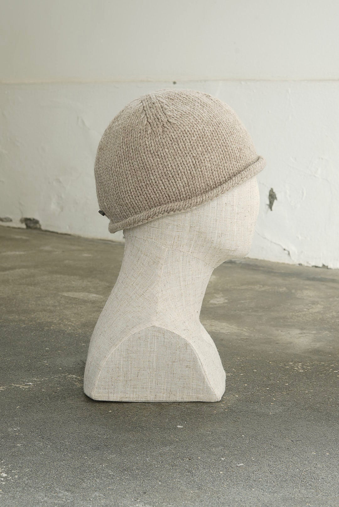 優れた保温性・柔らかい肌触りの上質なバージンウールのみを使用した、ハンドニッティドビーニー。ヘムをロールアップすることで深さの調整が可能です。