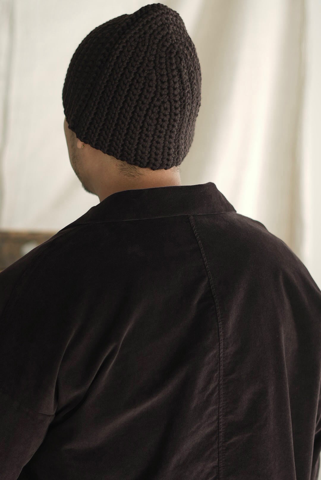 アントワープ王立美術アカデミーの衣装デザイン科で学んだイザベル・ベインズ。最終学年の発表会では「マルタン・マルジェラ」が彼女の作品のキャットウォークモデルを務めるなど、様々な感性や才能たちと交流を深め同時代を過ごしました。卒業後はパリやジュネーブの劇場で働いたのち、アントワープやニューヨークのファッションブランドに従事し経験を重ねます。1985年には自身のニットウェアコレクションを発表し、翌年にはブリュッセルにブティックをオープン、続いてニット専門のアトリエを設立。小規模な独立系ブランドとしてのスタイルを貫き、数々のニッティング技術を考案・開発しながら、職人的な手作業に深く没頭。美しくラグジュアリーなニットウェアの制作に専念してきた彼女の作品はアートとアルチザンの合流地点に位置し、「メイド・イン・ベルギー」が象徴する品質と技術に重点をおきながら、「ハンドメイド」「メイド・フォー・メジャー」「ワン・オブ・ザ・カインド」を主軸に、一部のプレタポルテを世に生み出し世界中に熱心な顧客を抱える存在に。そこから十数年間、ブランド/ブティックの運営を続けるうちに、本来の情熱のみに戻ることを決意。彼女の人生のパッションは7歳から続ける静かな作業、ニッティング(手編み)でした。現在はブリュッセルの自宅兼アトリエで、より小規模なスタイルをとりながら、棒針とかぎ針を使い、ただ一人でビーニーやショールを粛々と制作。限られた一部のショップとコラボレーションを行い、作品を世に送り出しています。スタイリングのアクセサリーとしての大切な要素「デイリーウェアラブ」。それは日常に溶け込む匿名性がありつつ、上質であるという一番大切な部分を保持していること。彼女の優しくも聡明な人柄から温もりを感じられるアイテム、ベーシックからアヴァンギャルドまで、数々の経験を積んだ上の引き算のデザイン性は、人々の日常に寄り添うグッドデザイン&プロダクト。