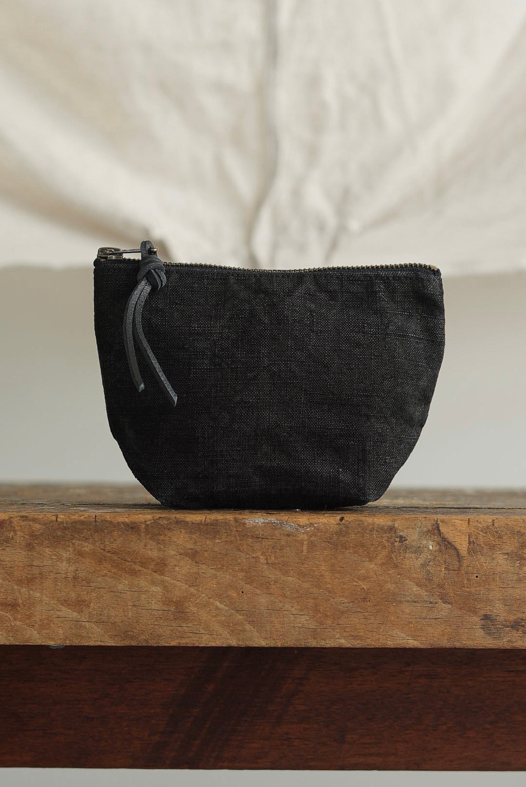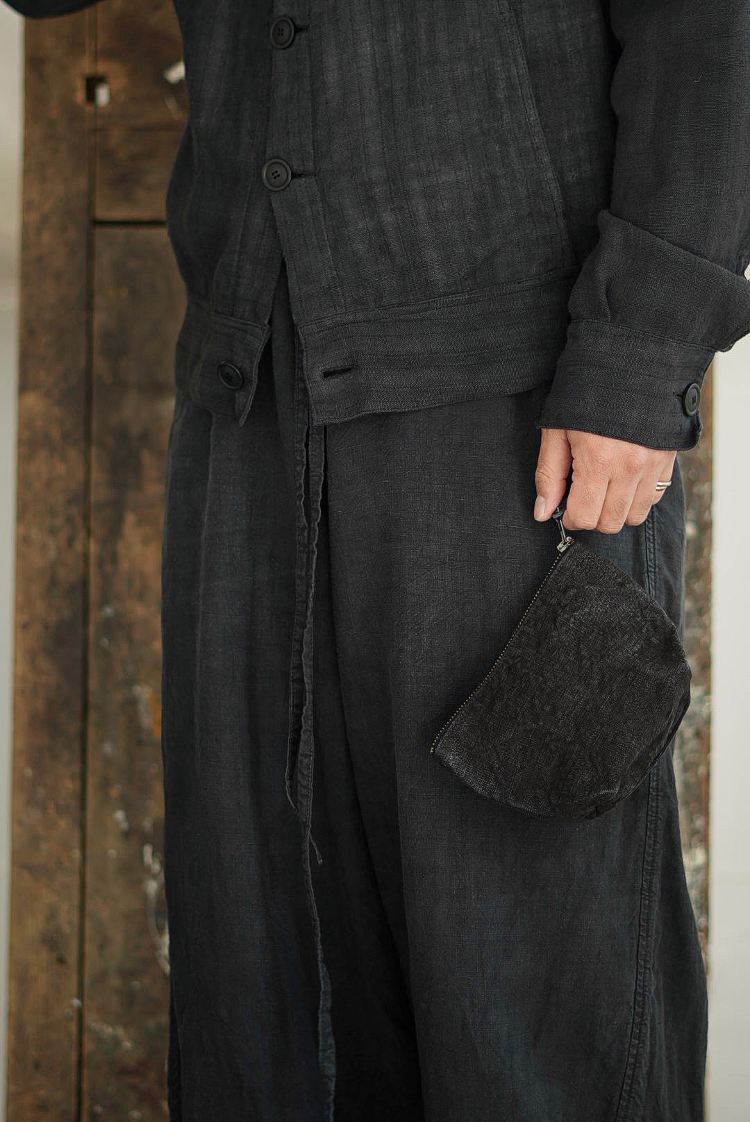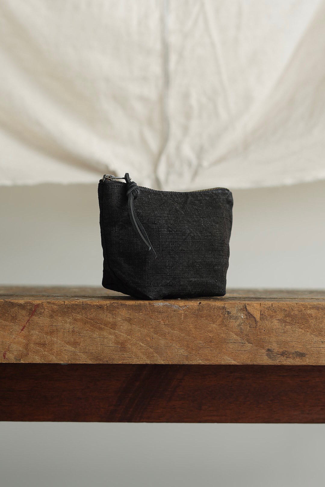 "VINCENT JALBERT"のパートナー、YVES ANDRIEUXの手掛けるアイテム。使い勝手の良いミニサイズ。1930年代、厚手のフレンチヴィンテージヘンプファブリックを使用。この手の物は「探し始めるとなかなか"コレ!"に出会わない」カテゴリーだと思います。表情深く染まったブラックカラー。バッグに忍ばせられるクールなポーチ。レザーストラップ付き。フルライニング仕様。