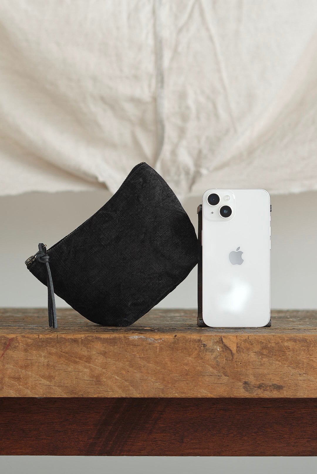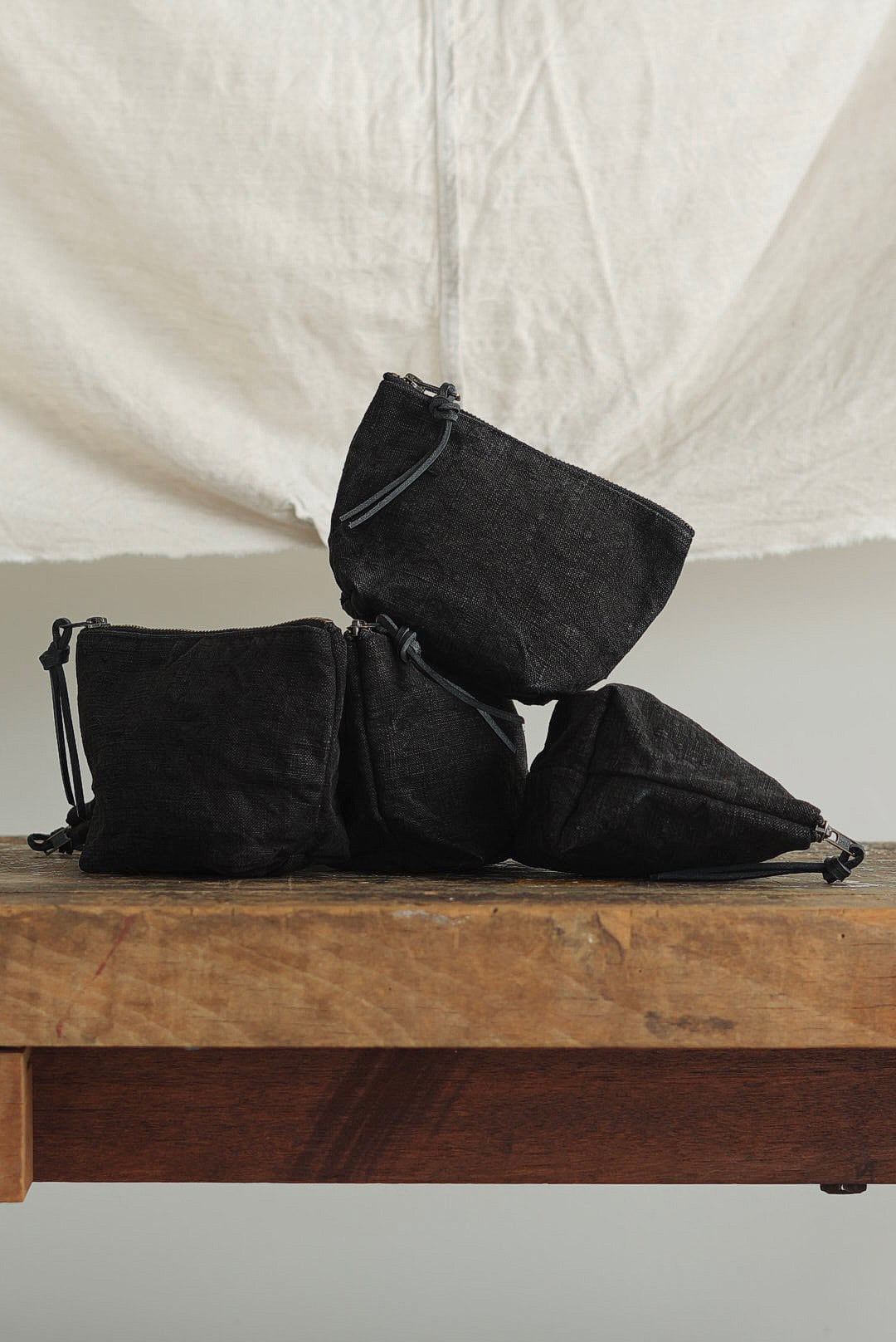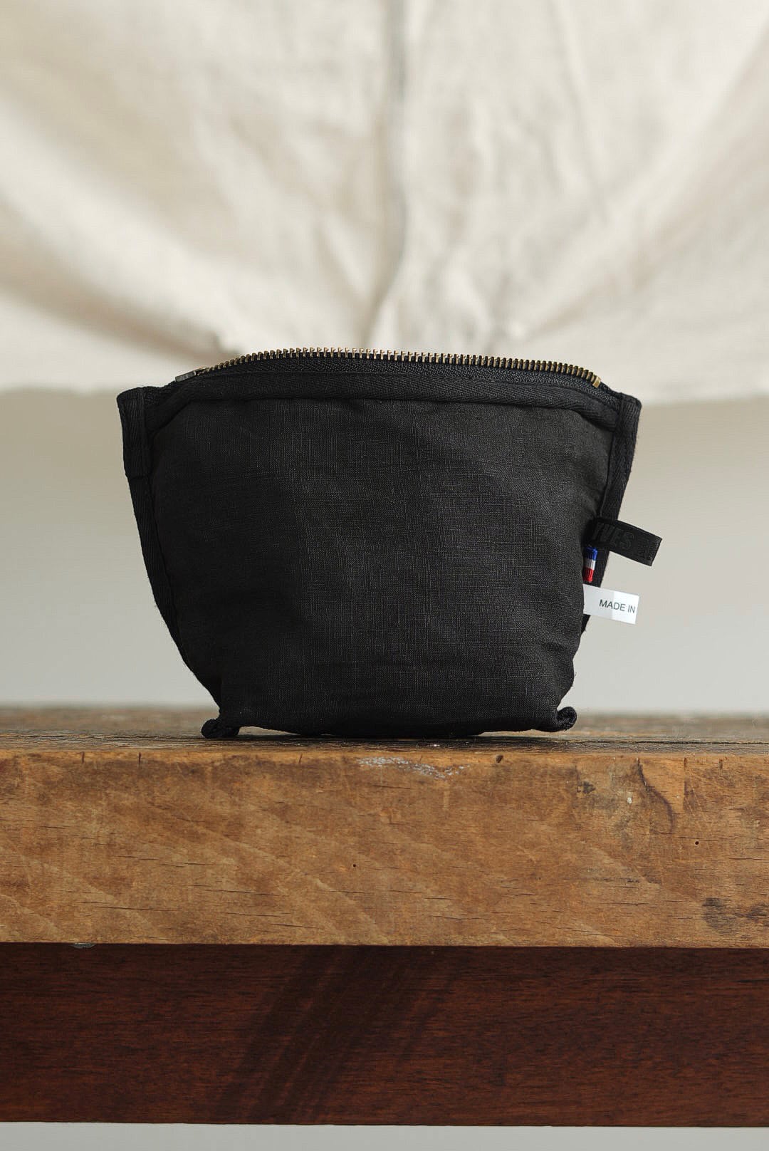 "VINCENT JALBERT"のパートナー、YVES ANDRIEUXの手掛けるアイテム。使い勝手の良いミニサイズ。1930年代、厚手のフレンチヴィンテージヘンプファブリックを使用。この手の物は「探し始めるとなかなか"コレ!"に出会わない」カテゴリーだと思います。表情深く染まったブラックカラー。バッグに忍ばせられるクールなポーチ。レザーストラップ付き。フルライニング仕様。