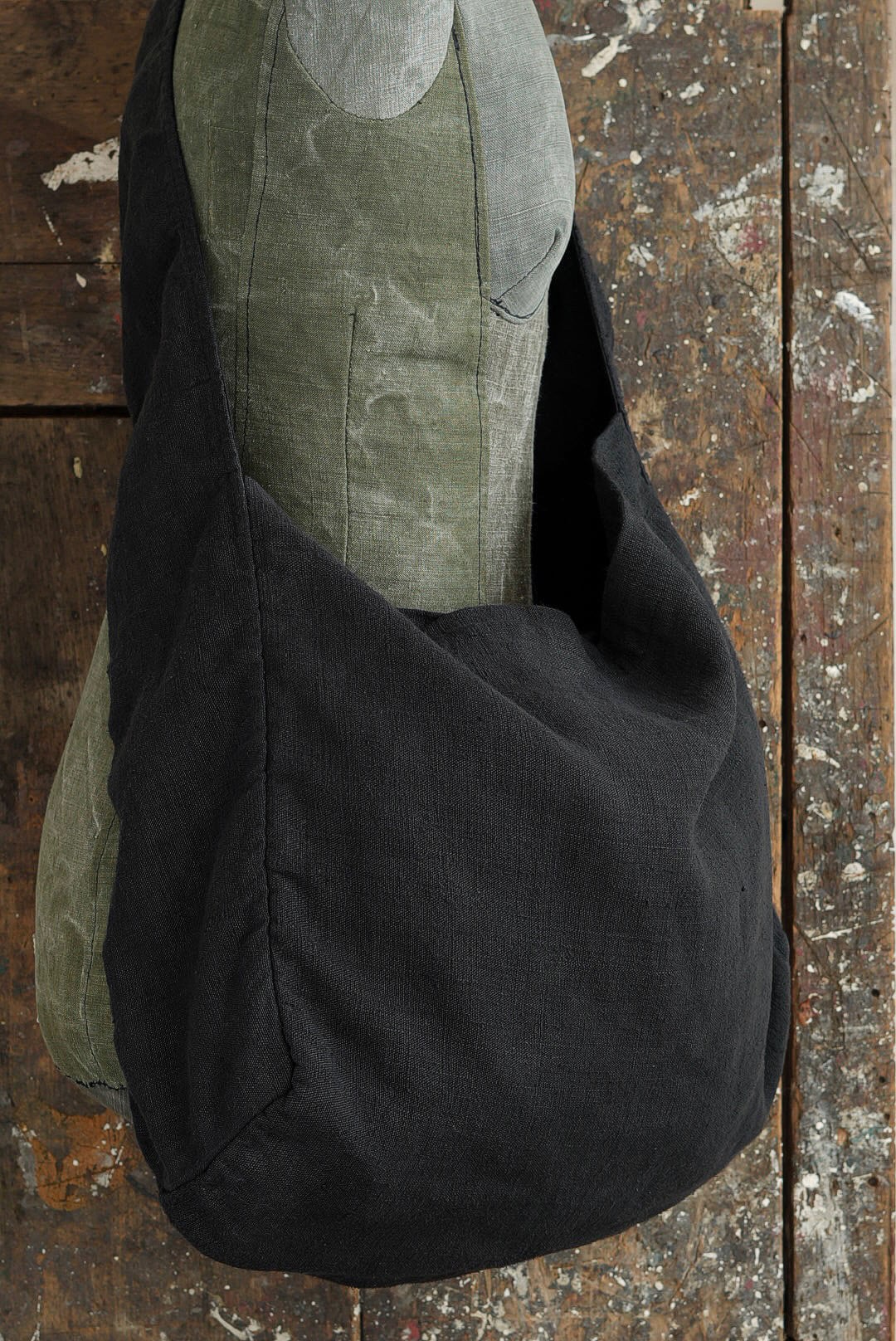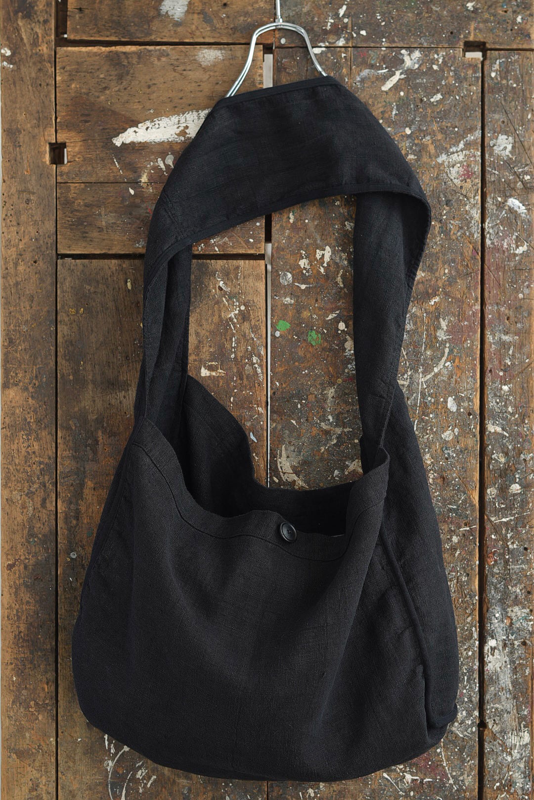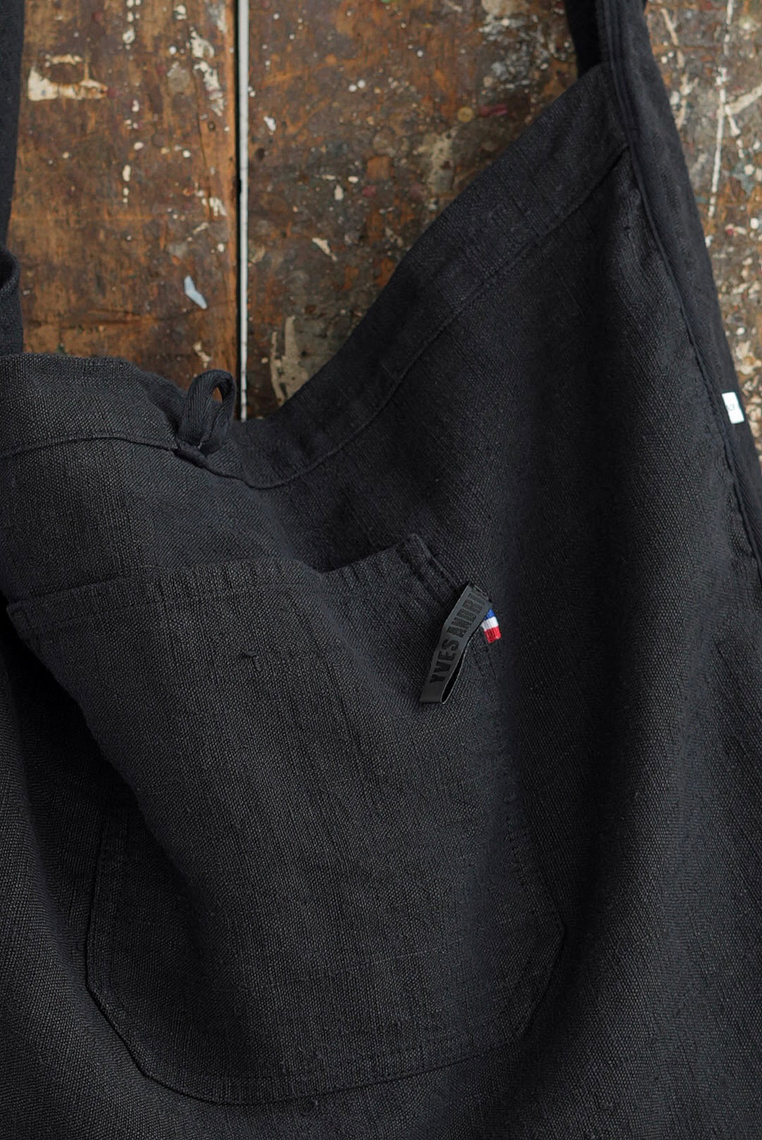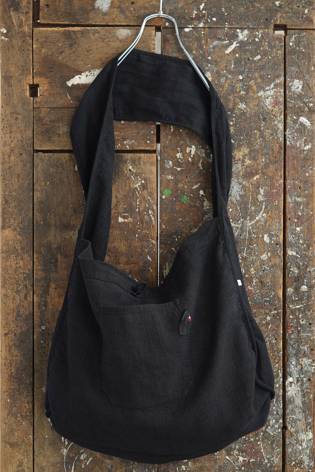 "VINCENT JALBERT"のパートナー、YVES ANDRIEUXの手掛けるアイテム。1930年代、厚手のフレンチヴィンテージヘンプファブリックを使用。ファブリック本来の柔らかく弾力に富んだ素材感を活かした形状のショルダーバック。製品にヘビーウォッシュを施すことで柔軟性を加え、表情豊かなフェード感のある仕上がりとなったブラックカラー。ドレープを助長するアンライニング仕様。上部はホーンボタン留め。実用的なパッチポケットが1口備わります。