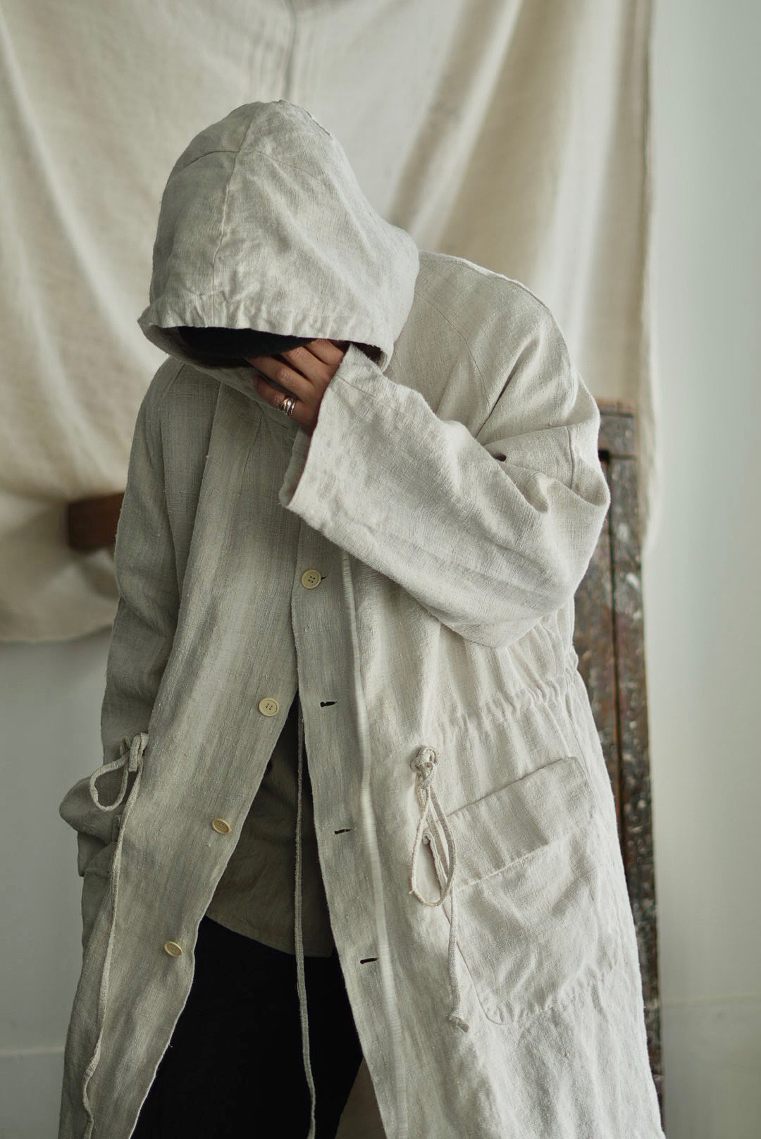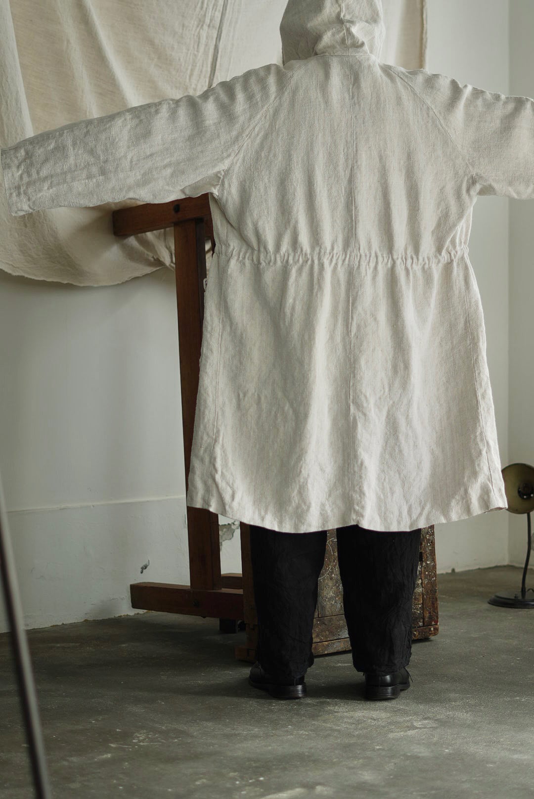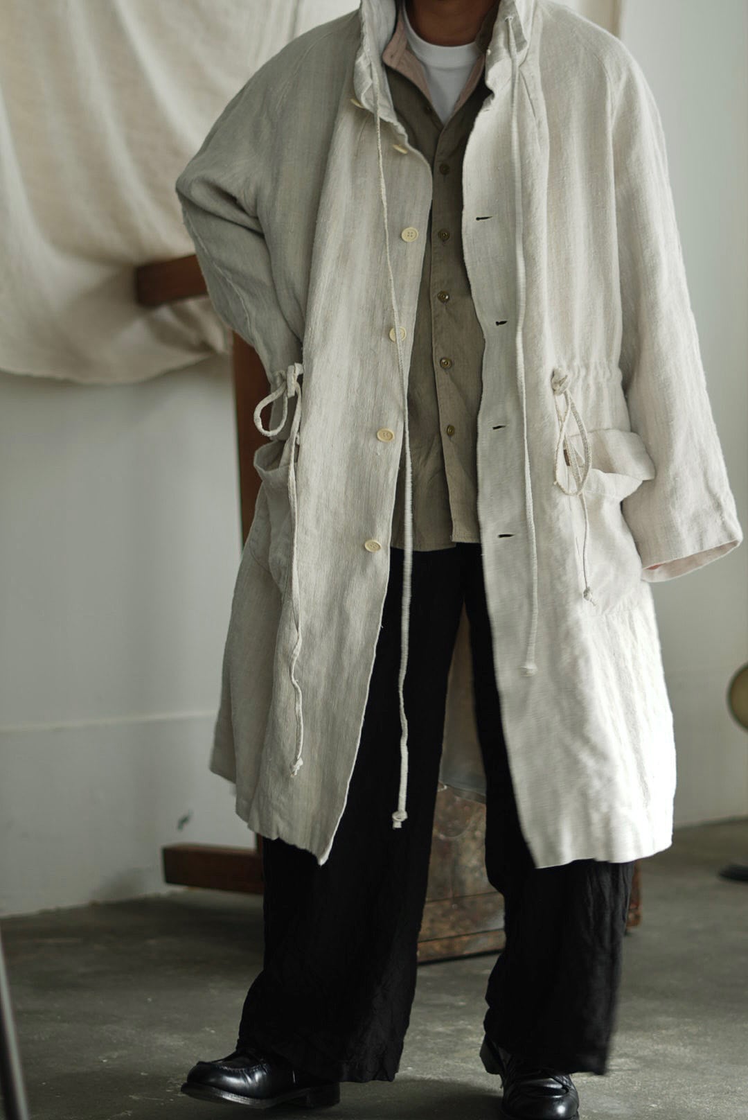 VINCENT JALBERT - VINTAGE FRENCH LINEN LONG PARKA - NATURAL (着用 size S) ↓