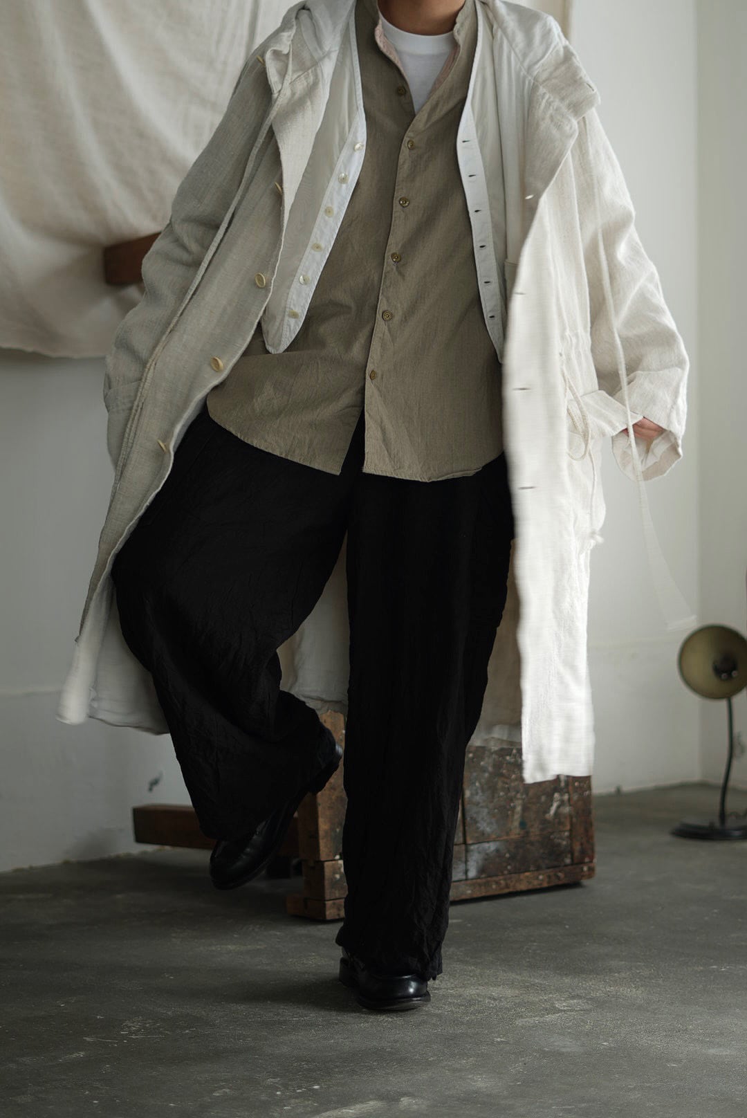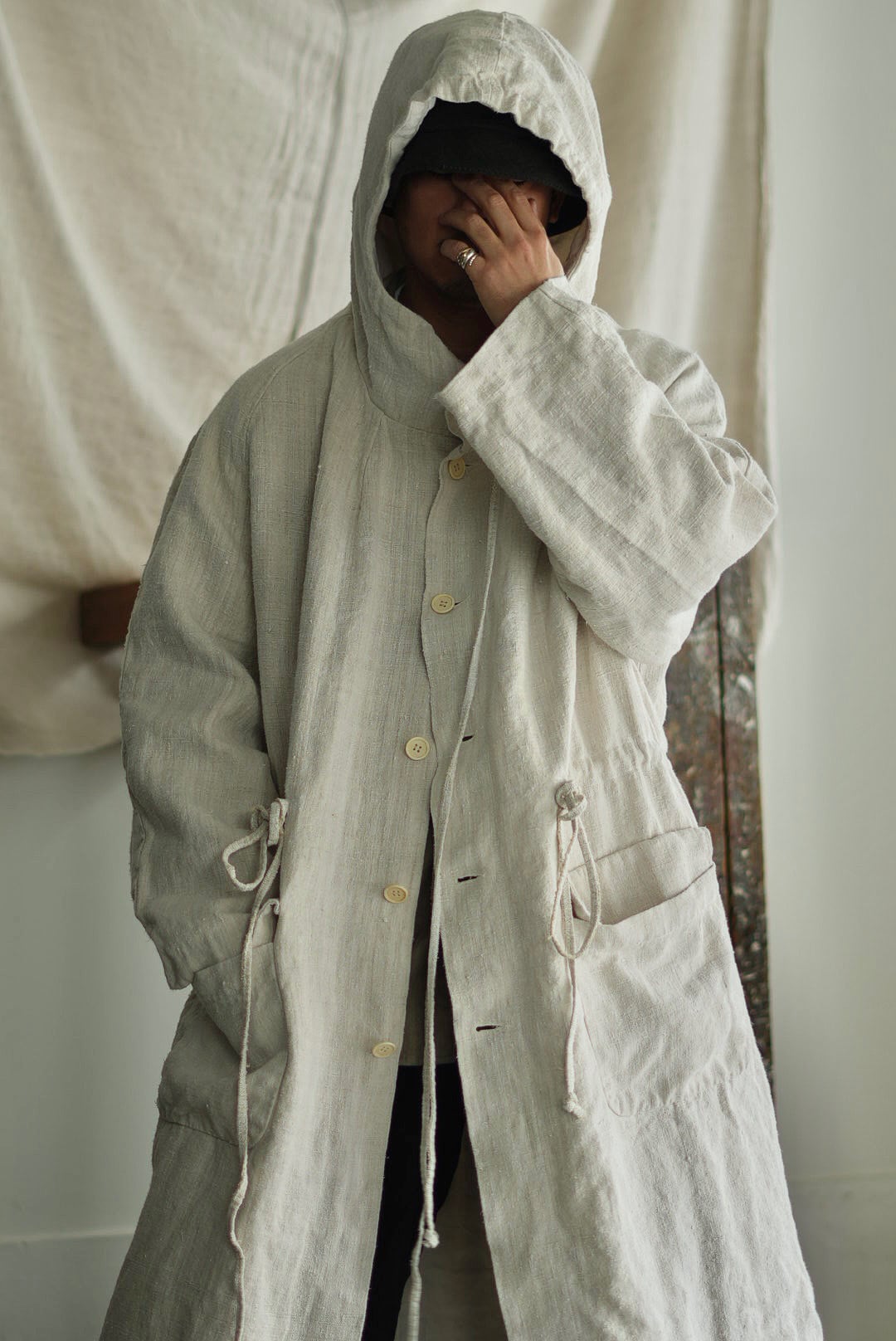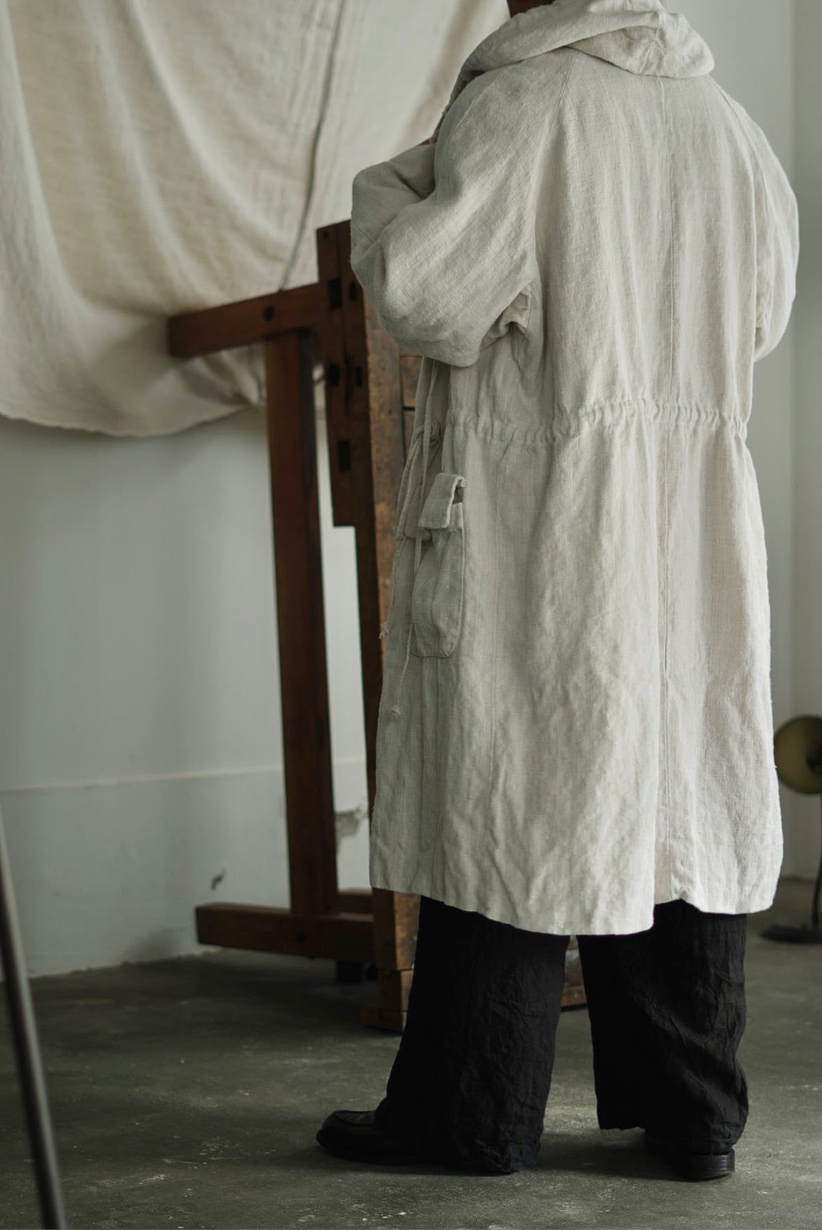 VINCENT JALBERT - VINTAGE FRENCH LINEN LONG PARKA - NATURAL (着用 size S) ↓