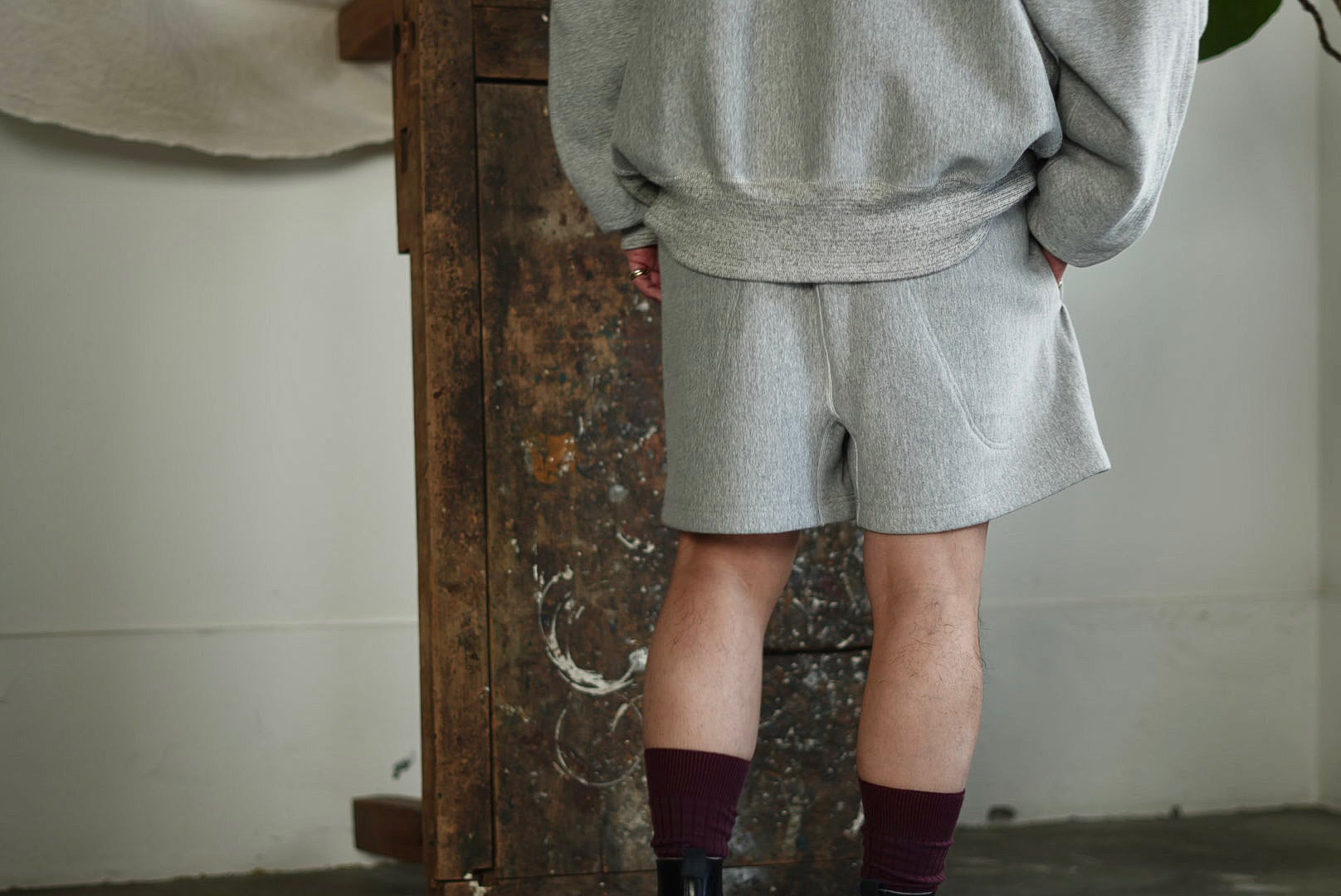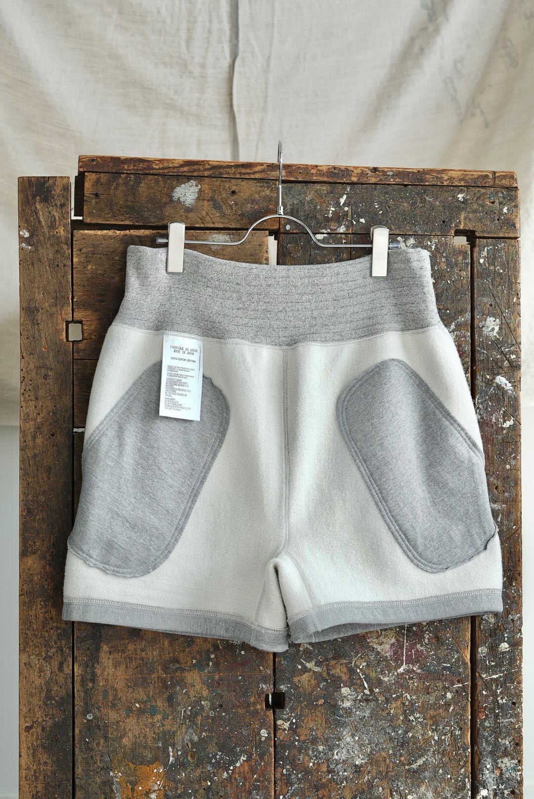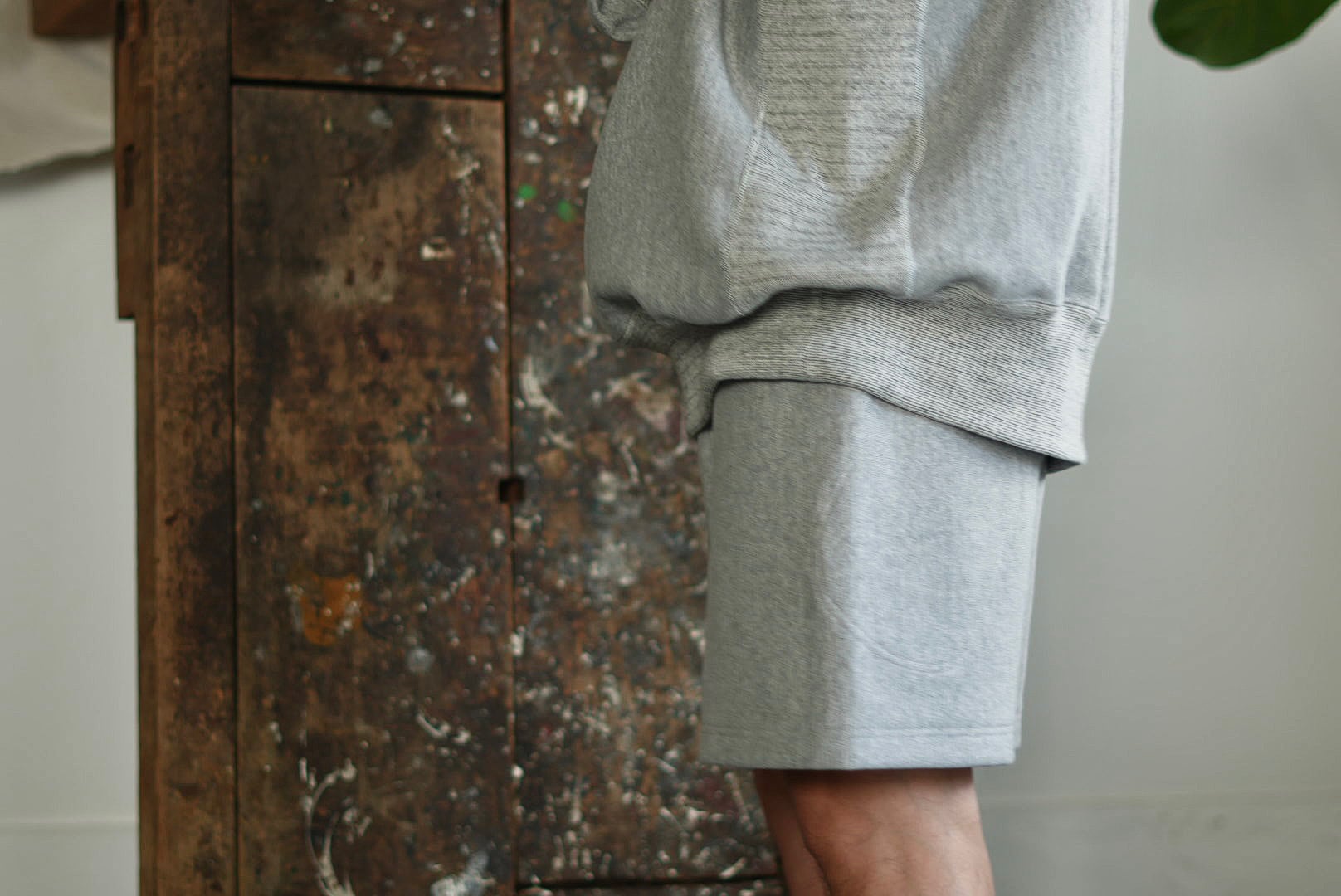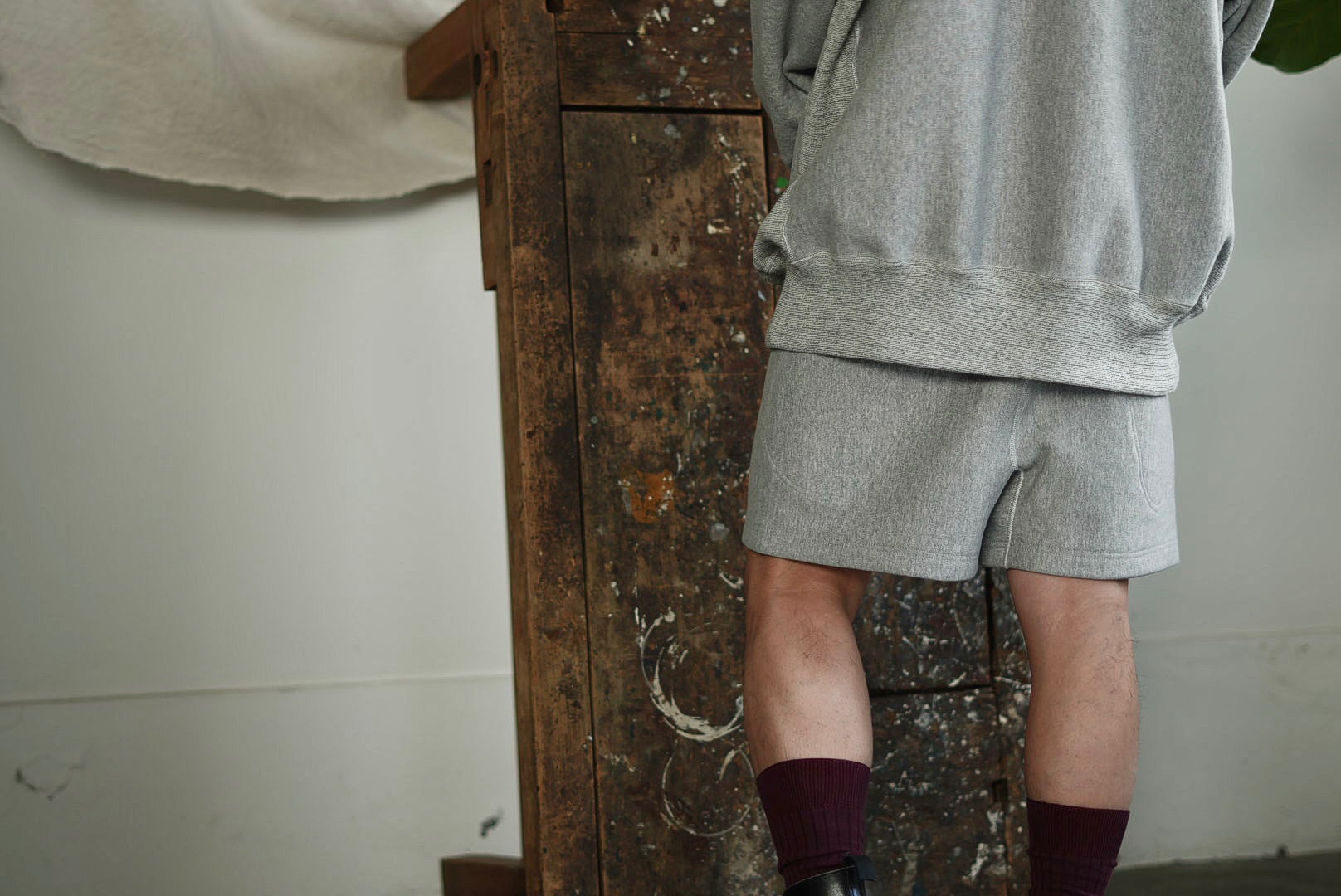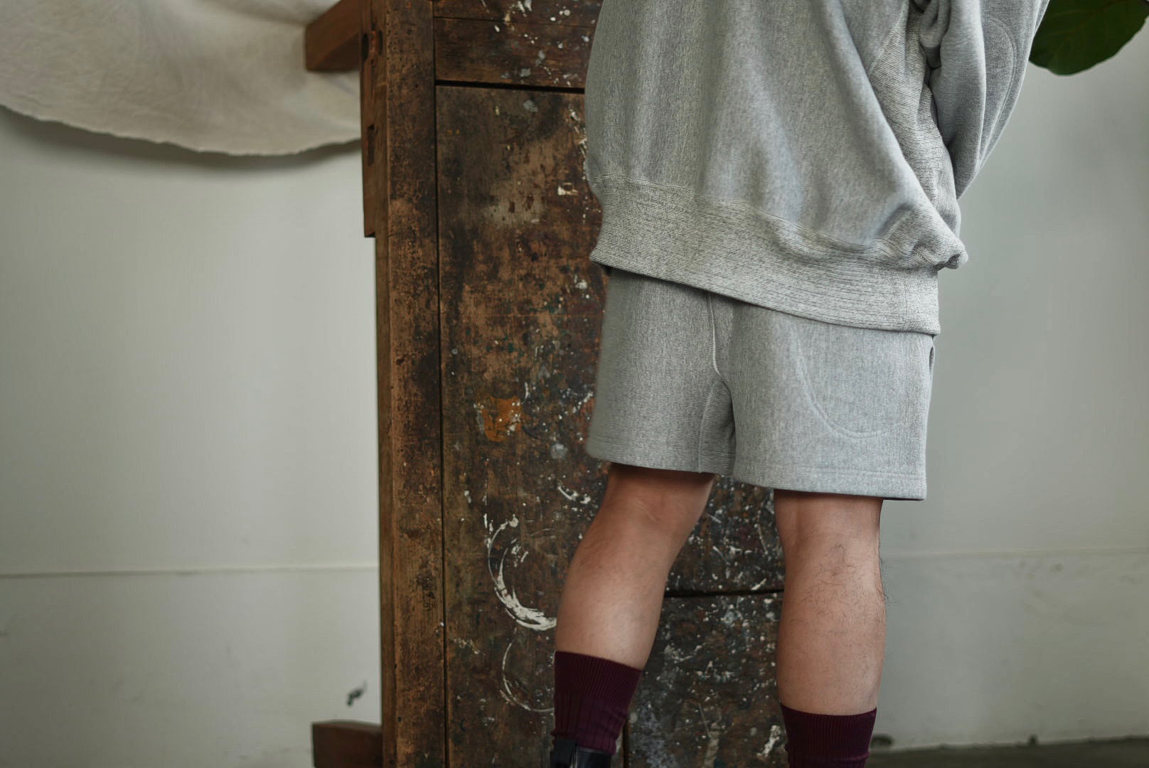 シンプルなボクサーショーツ。裏から当てたヒップパッチ。ヘヴィに編まれたコットンフリースに美しいフラットシーム。起毛仕上げのボリューム感がある裏面。ライトサイド1ポケット。