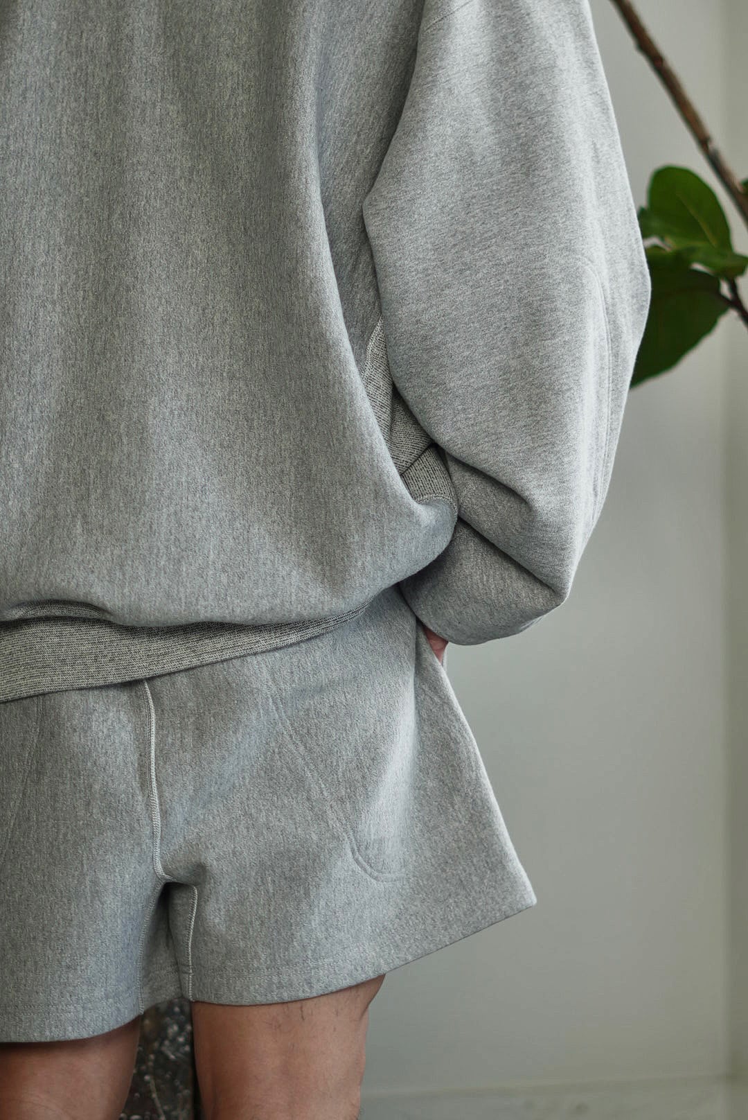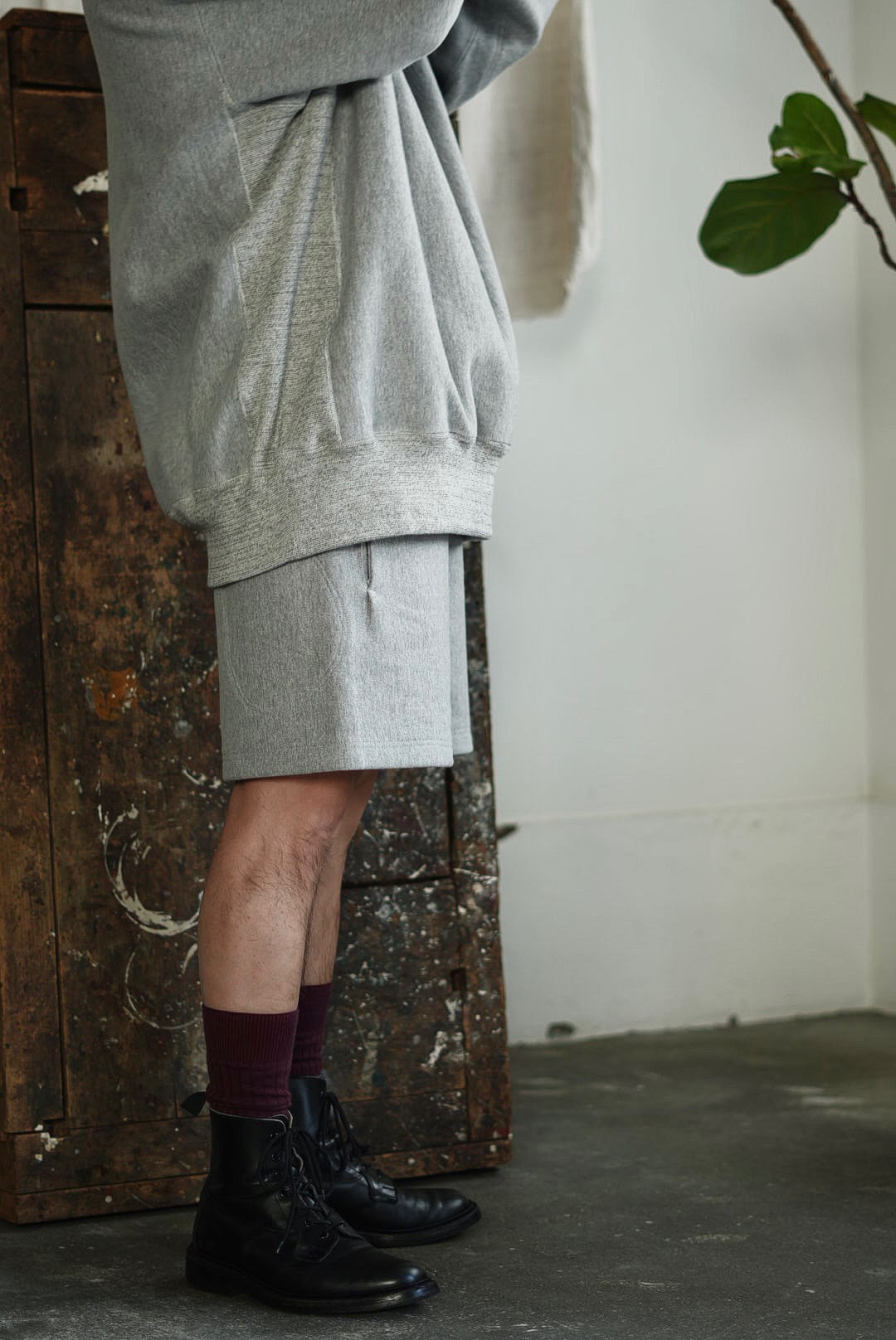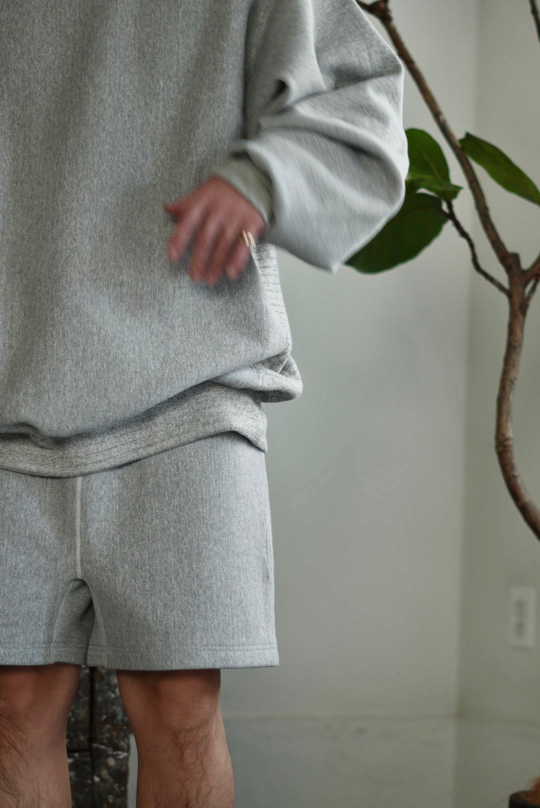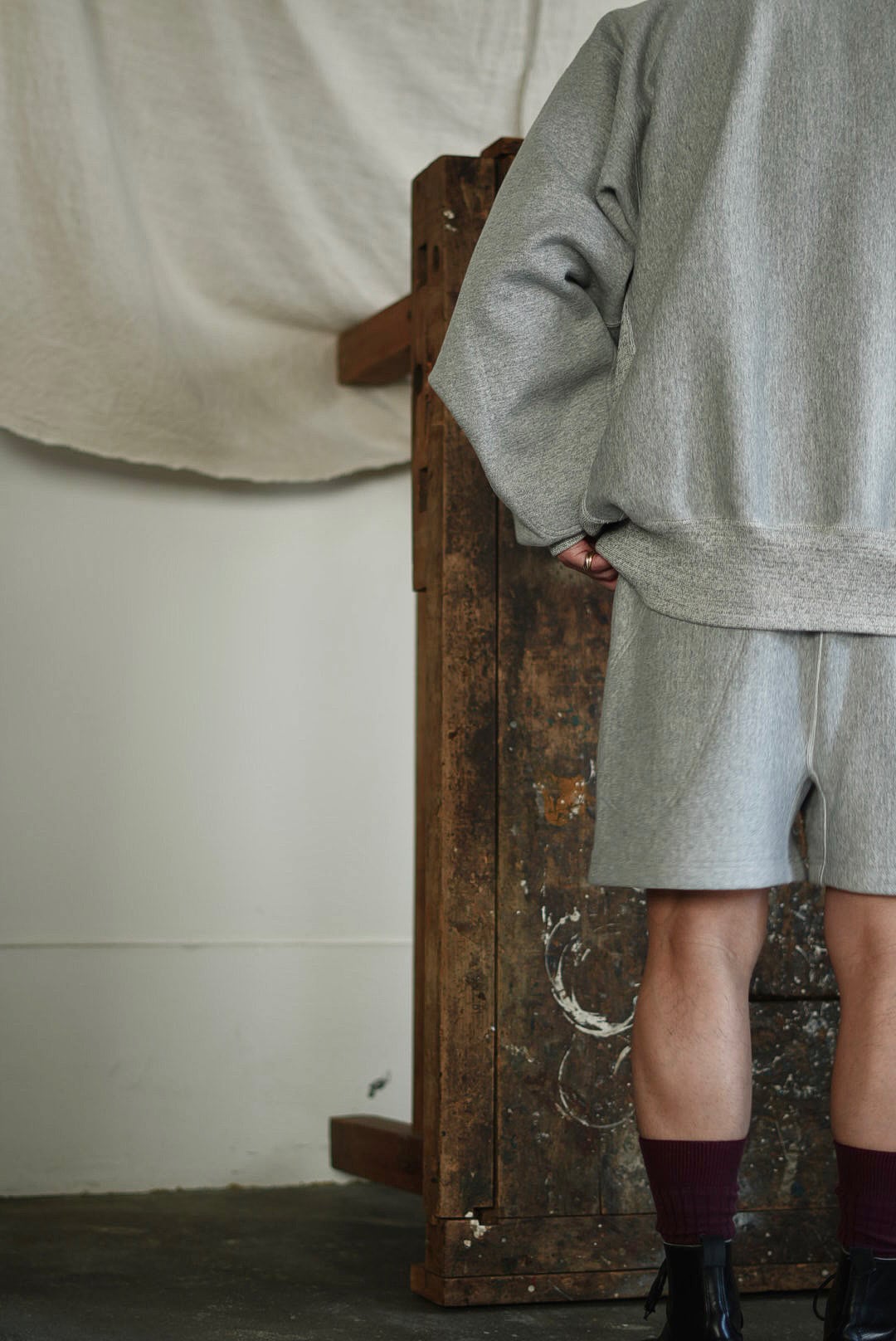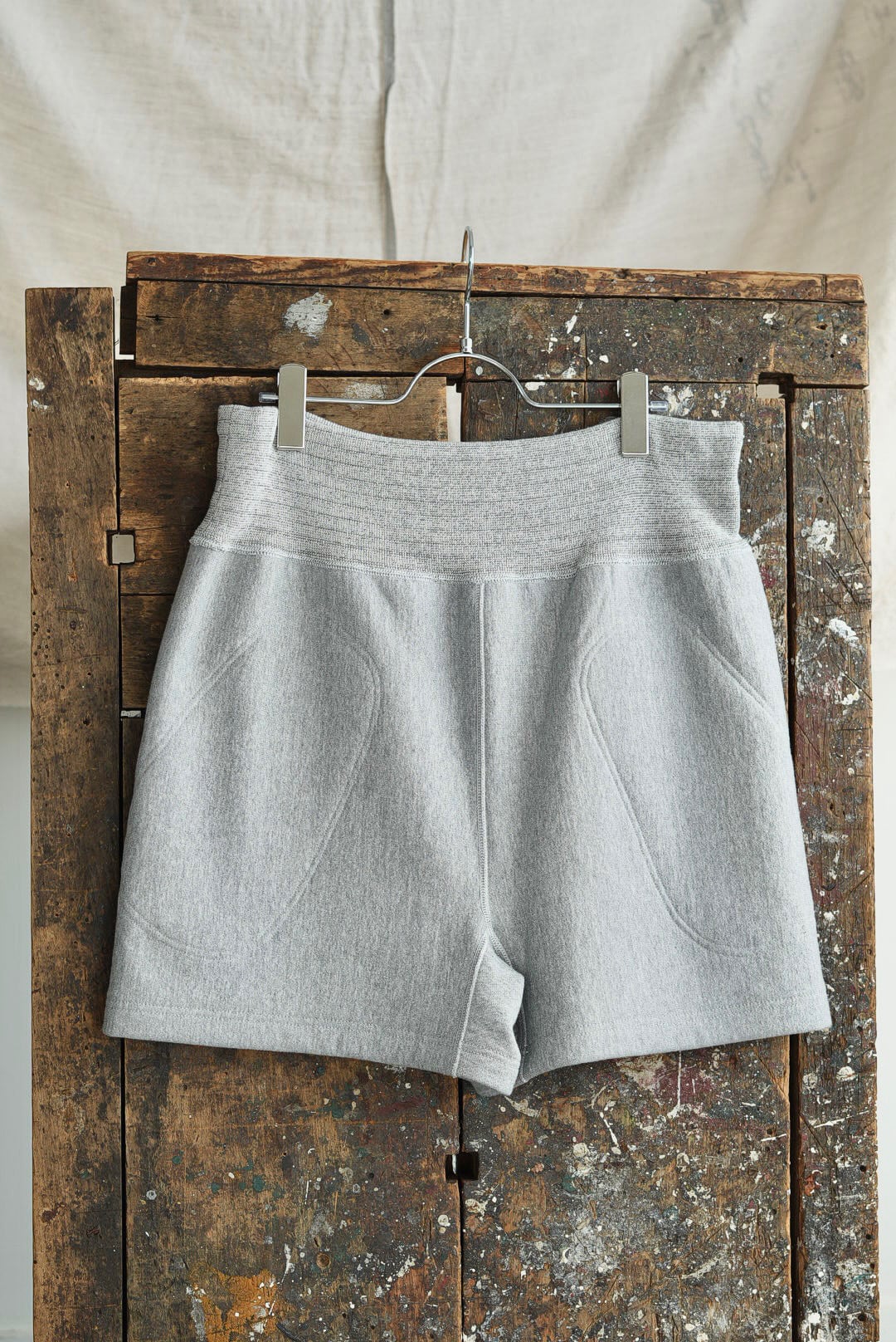 シンプルなボクサーショーツ。裏から当てたヒップパッチ。ヘヴィに編まれたコットンフリースに美しいフラットシーム。起毛仕上げのボリューム感がある裏面。ライトサイド1ポケット。