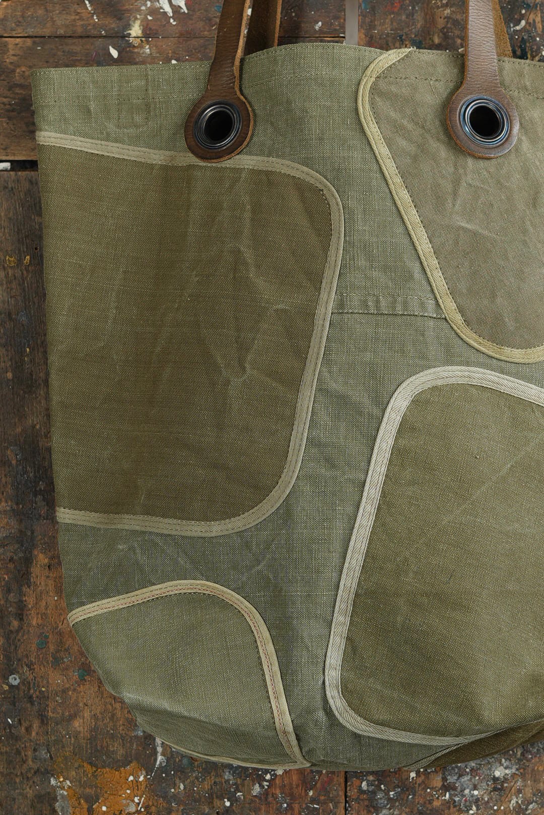 - PATCH TOTE "DUFFEL BAG FLAP" + LEATHER HANDLE -