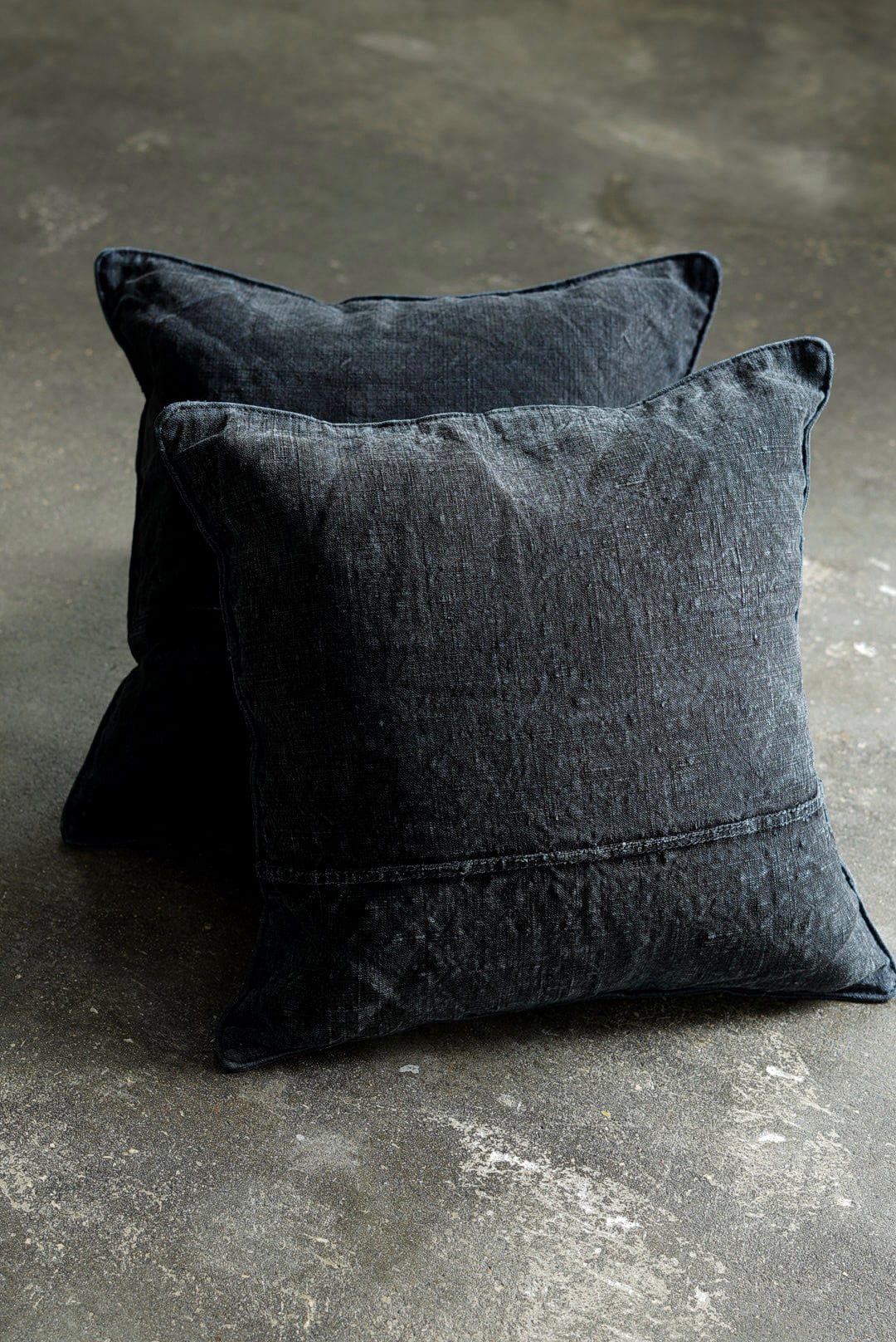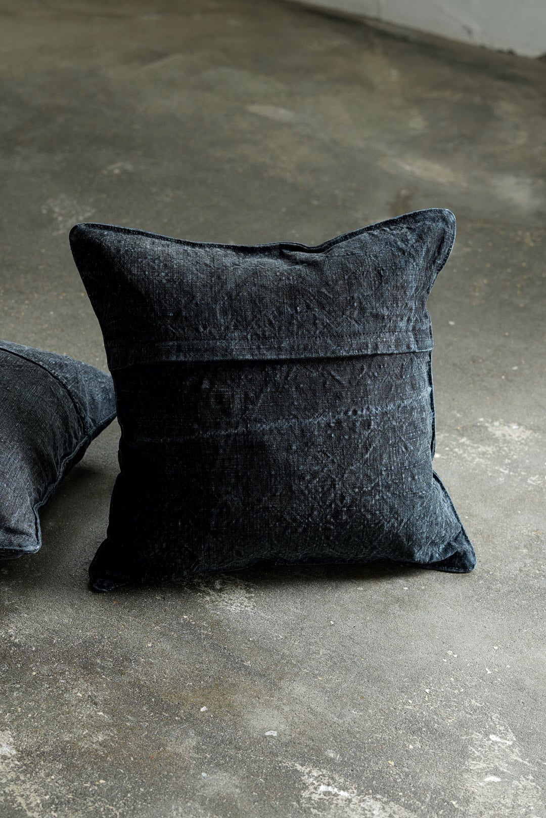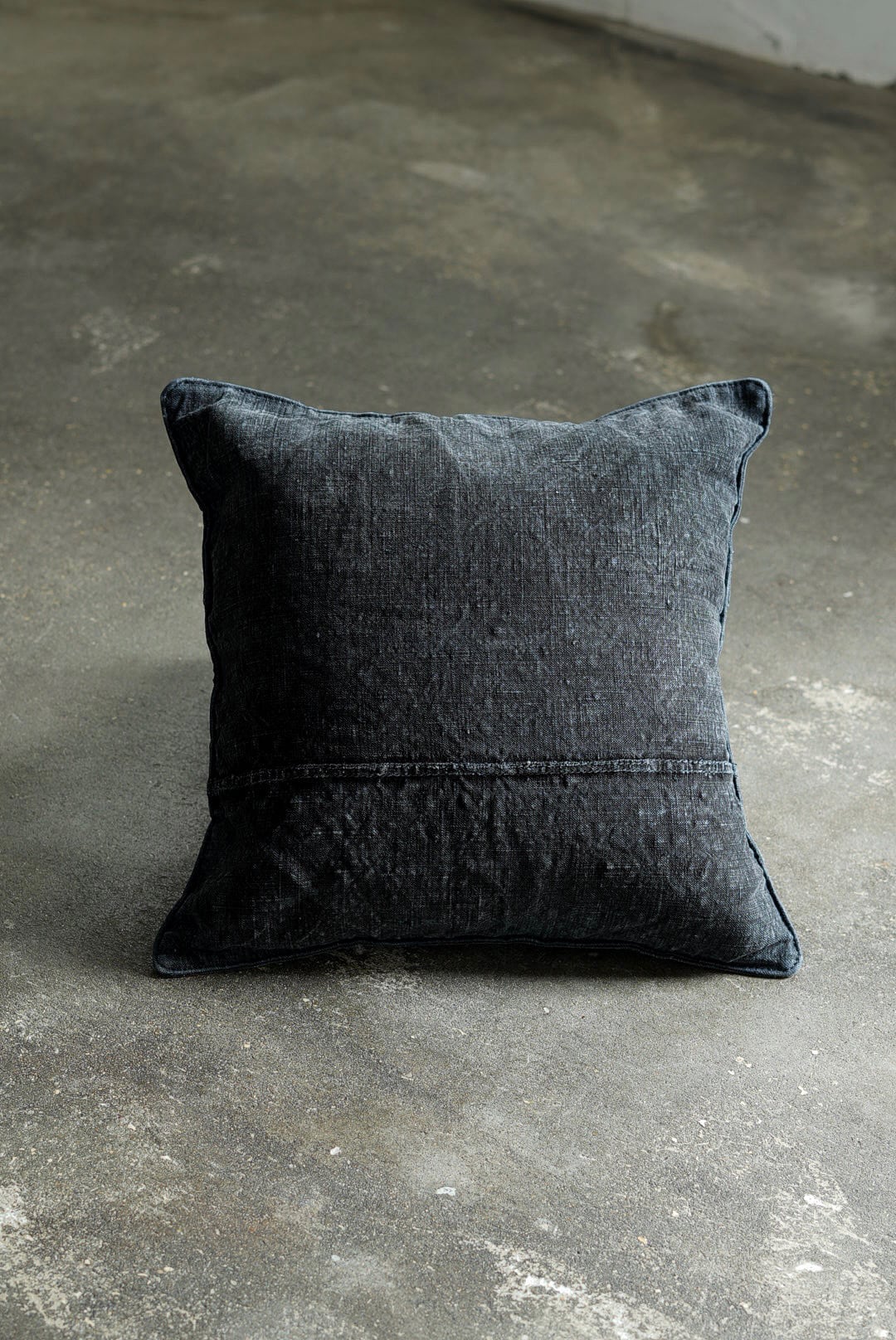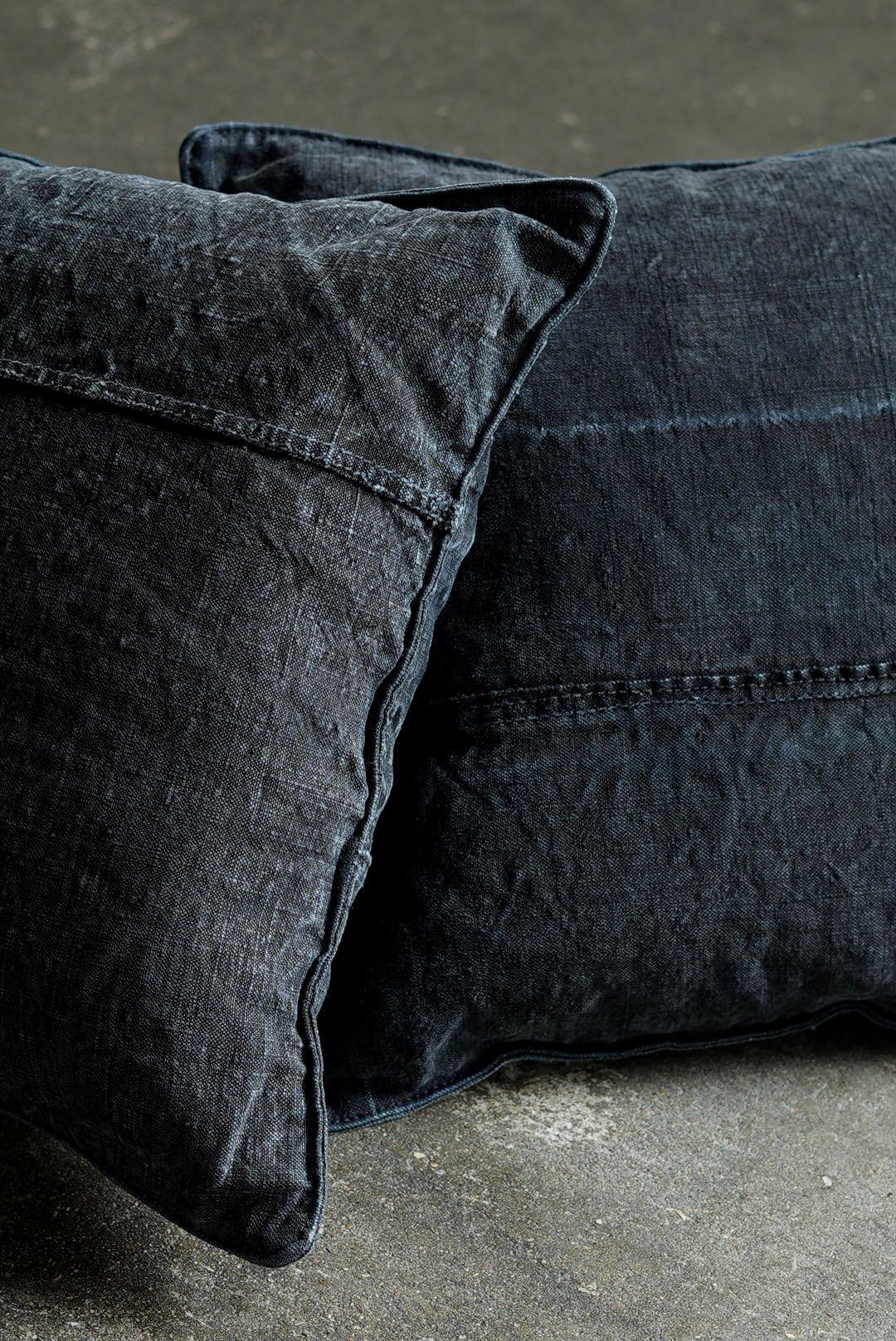 "VINCENT JALBERT"のパートナー、YVES ANDRIEUXの手掛けるアイテム。1950年代のイタリアンミリタリーアイテム(デッドストック)を解体し再構築。<解体・ウォッシュ・ダイ→褪色を促した後に再染色したヘンプファブリック>、フェードした淡いのブラックとネイビーに、ネップの表情が際立ちます。生地の繋ぎ方はそれぞれのワンオブザカインドデザイン。ヌードクッション付属。