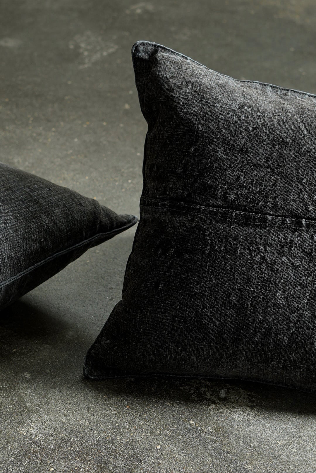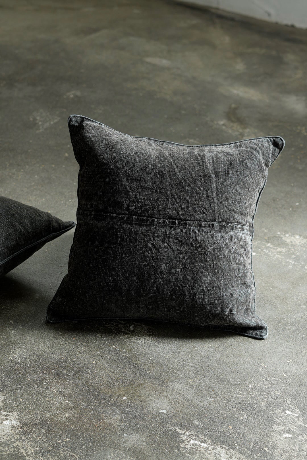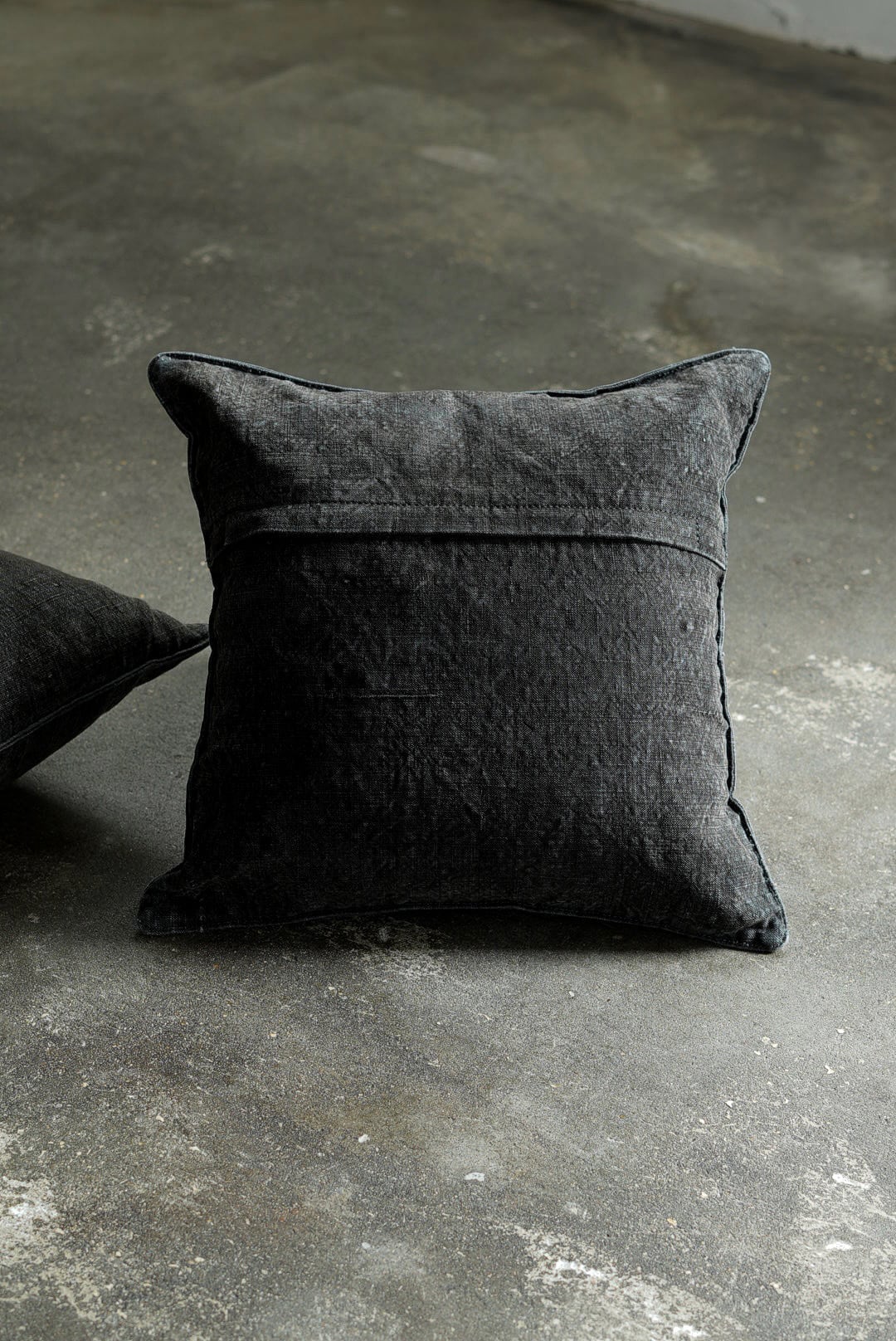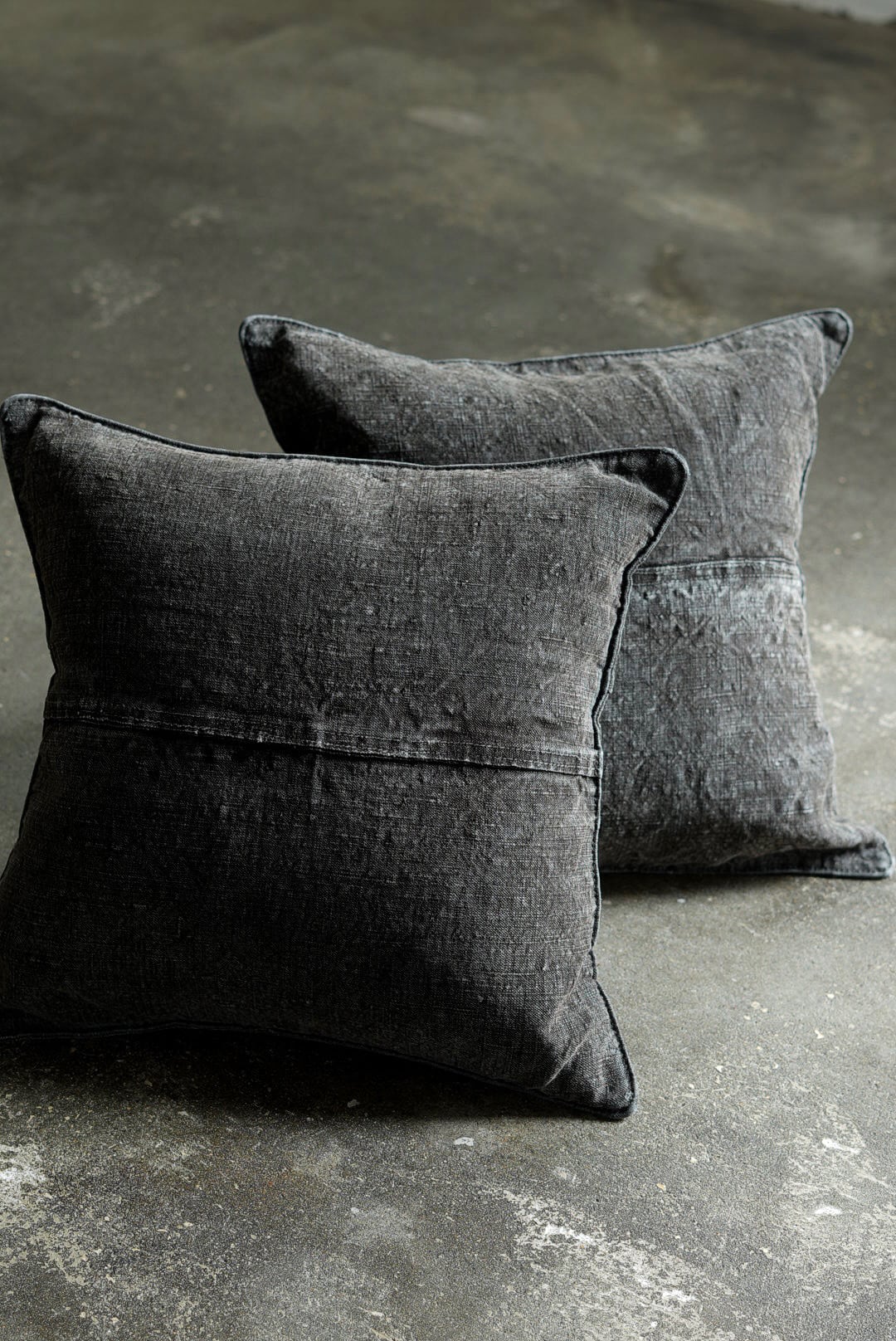 "VINCENT JALBERT"のパートナー、YVES ANDRIEUXの手掛けるアイテム。1950年代のイタリアンミリタリーアイテム(デッドストック)を解体し再構築。<解体・ウォッシュ・ダイ→褪色を促した後に再染色したヘンプファブリック>、フェードした淡いのブラックとネイビーに、ネップの表情が際立ちます。生地の繋ぎ方はそれぞれのワンオブザカインドデザイン。ヌードクッション付属。