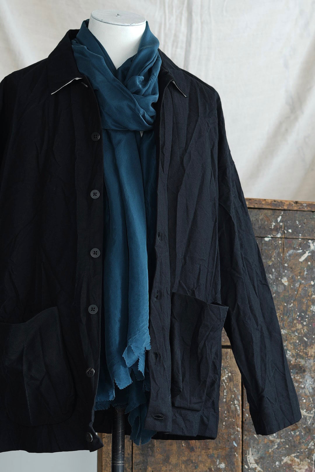This piece was hand dyed in our Paris atelier. Any change of color or little tone defect is part of its intrinsic beauty. Enjoy wearing it as much as we enjoyed making it. "Philippe Vidalenc" / この作品はパリのアトリエで手作業にて染色をしたアイテムです。色の変化やわずかな色調誤差は、本来の美しさの一部です。私たちが楽しんで作ったようにこのコートを楽しんで着てくださいね。"フィリップ・ヴィダレンク"
