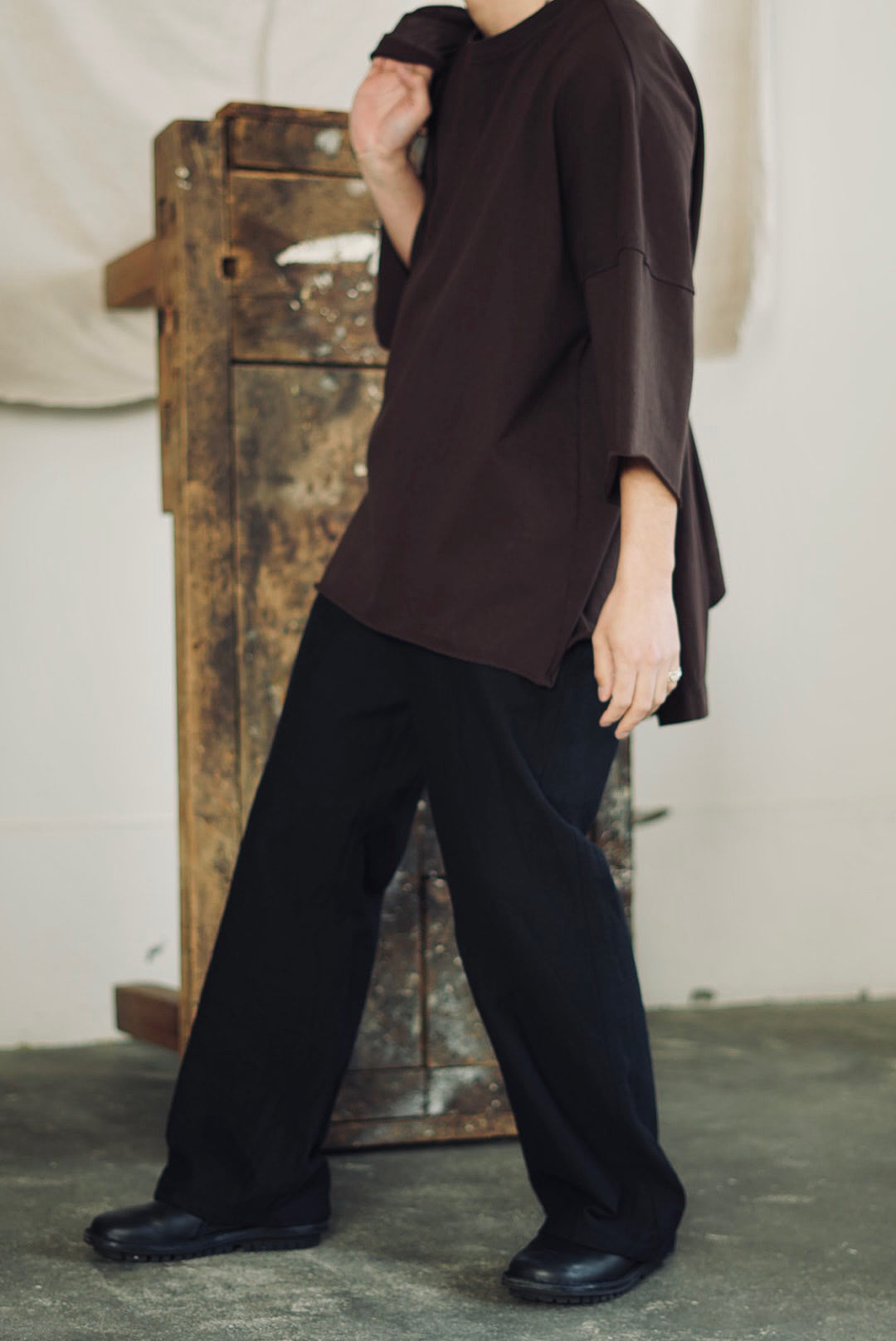 FORME D'EXPRESSION - STRAIGHT RELAXED JEAN / WASHED BLACK (着用 size 46) ↓