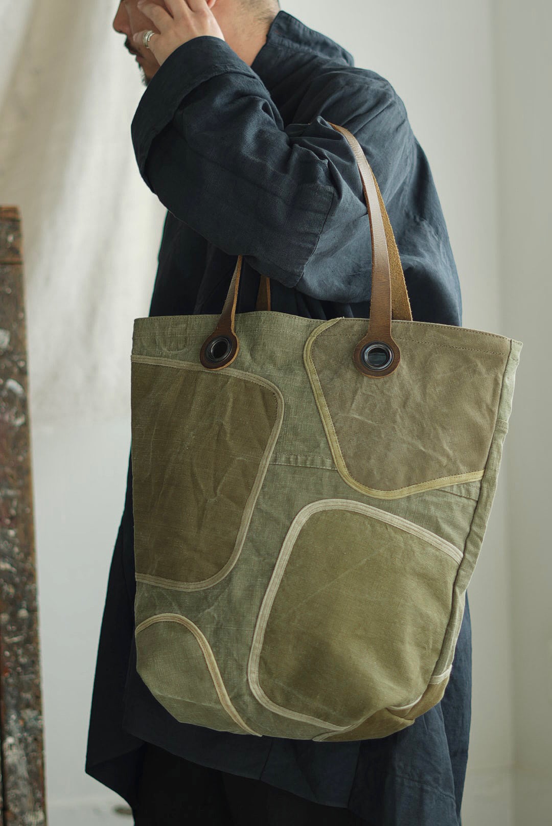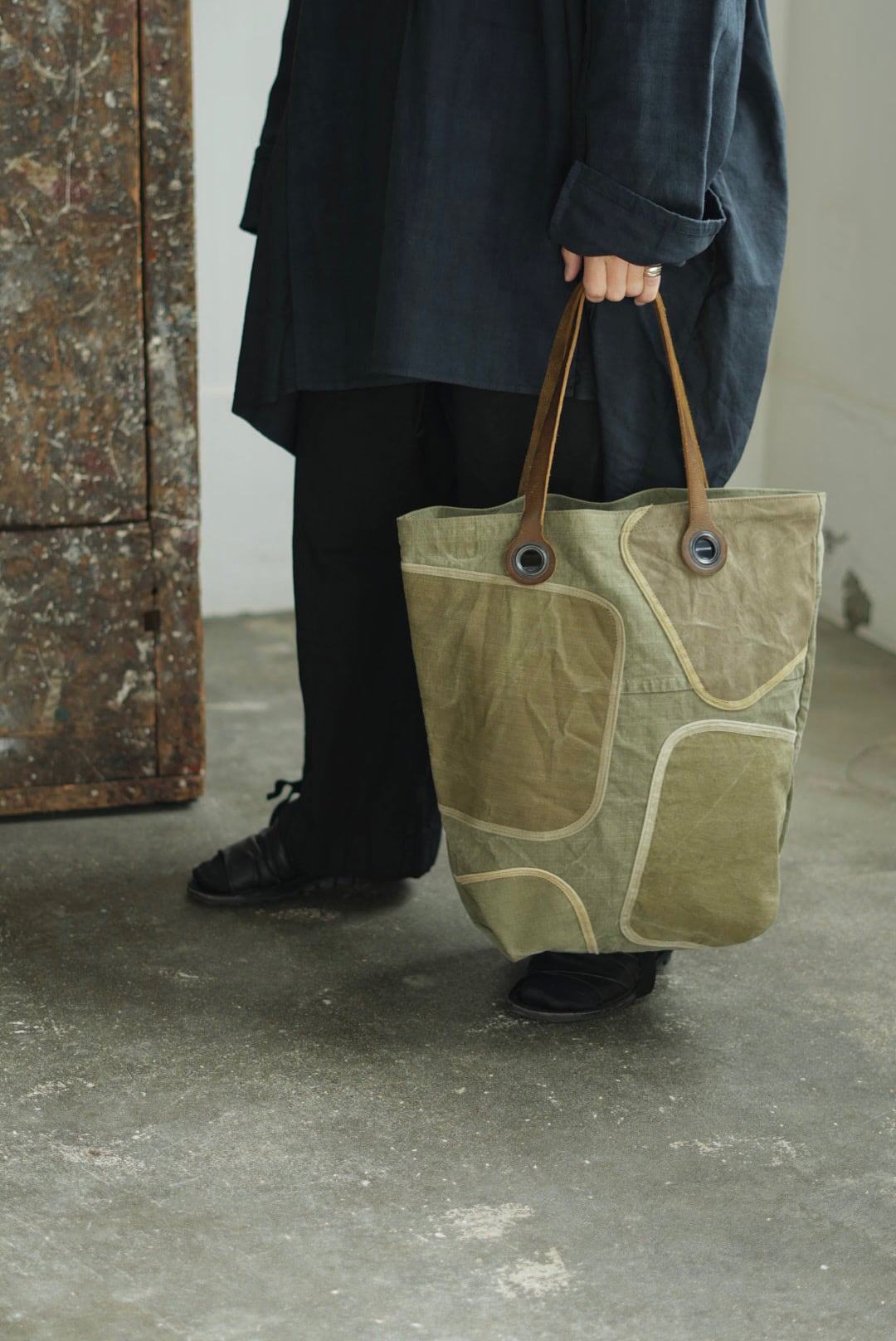 YVES ANDRIEUX - PATCH TOTE "DUFFEL BAG FLAP"+ LEATHER HANDLE ↓