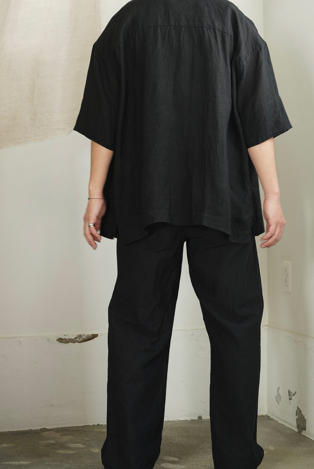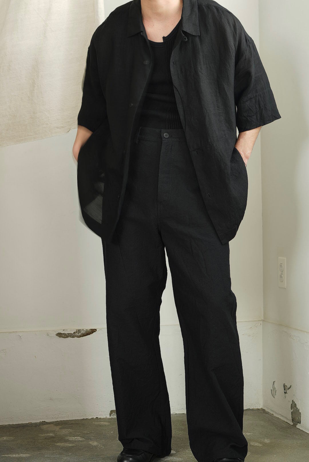 FORME D'EXPRESSION - CAMP SHIRT WITH CRESCENT POCKET / BLACK (着用 size S) ↓