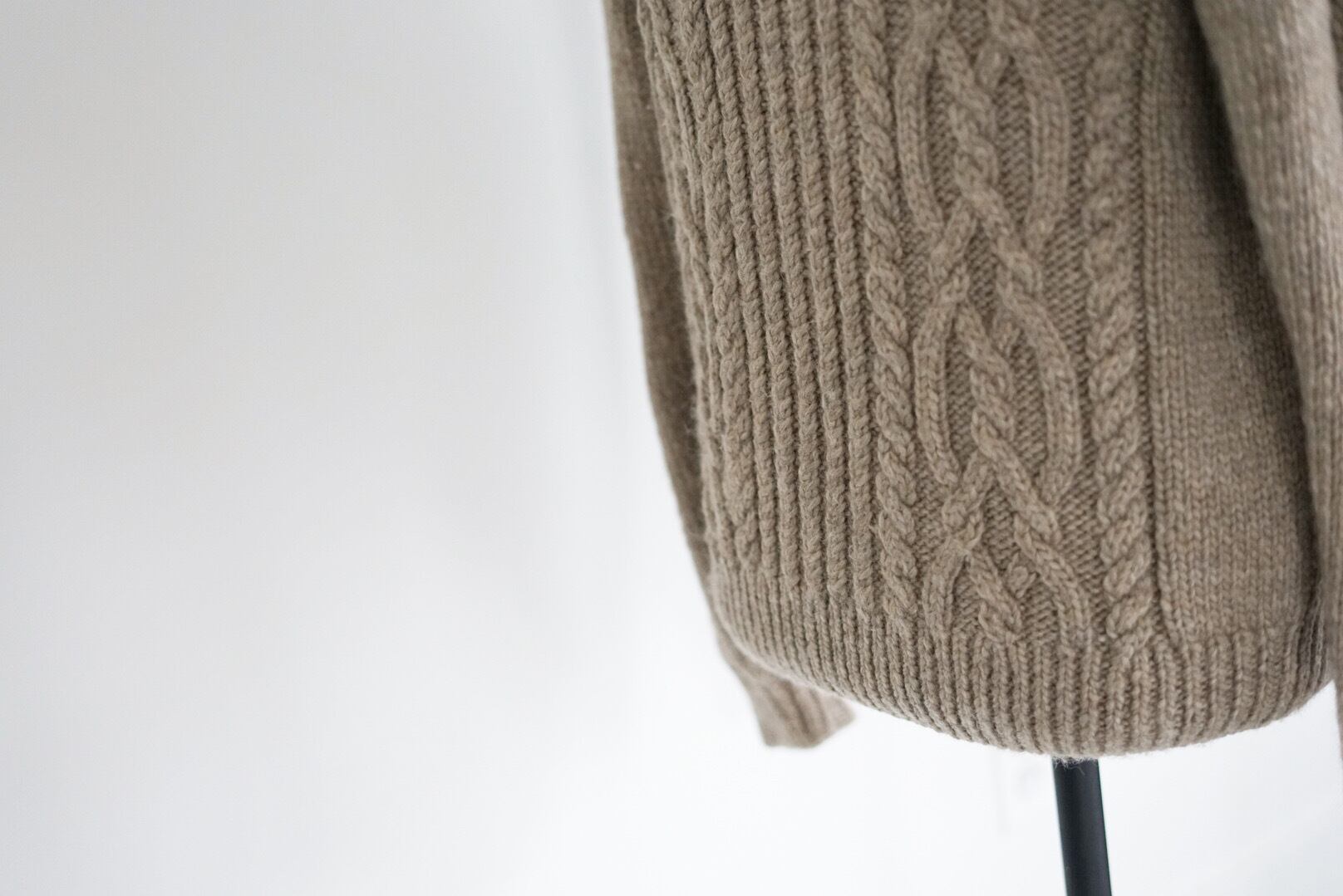 イギリスの沿岸部でピックアップしたニット。ブランドタグはありません。稀に見る柔らかな肌触りのフィッシャーマン。おそらくカシミア混です。荒々しい気候の土地ならではでなく、とがりのない温もりを感じるアイテム。