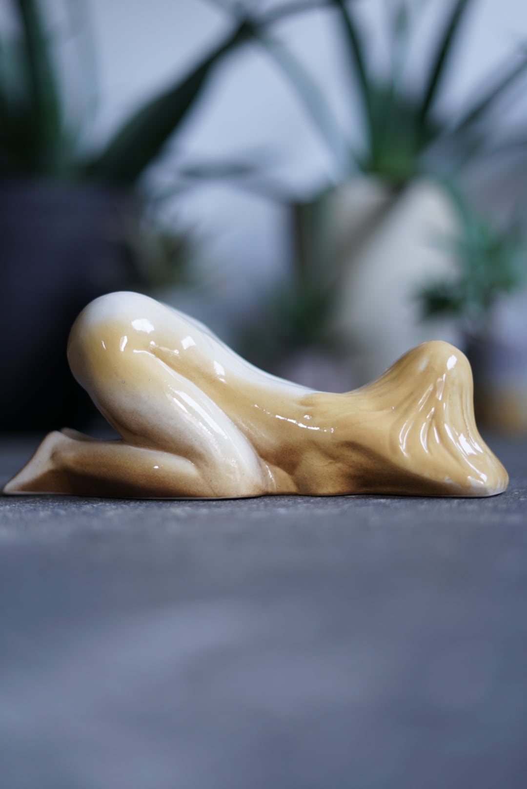 ヌードをアートに。ブロンドヘアーのセラミック貯金箱。オブジェクトとして。