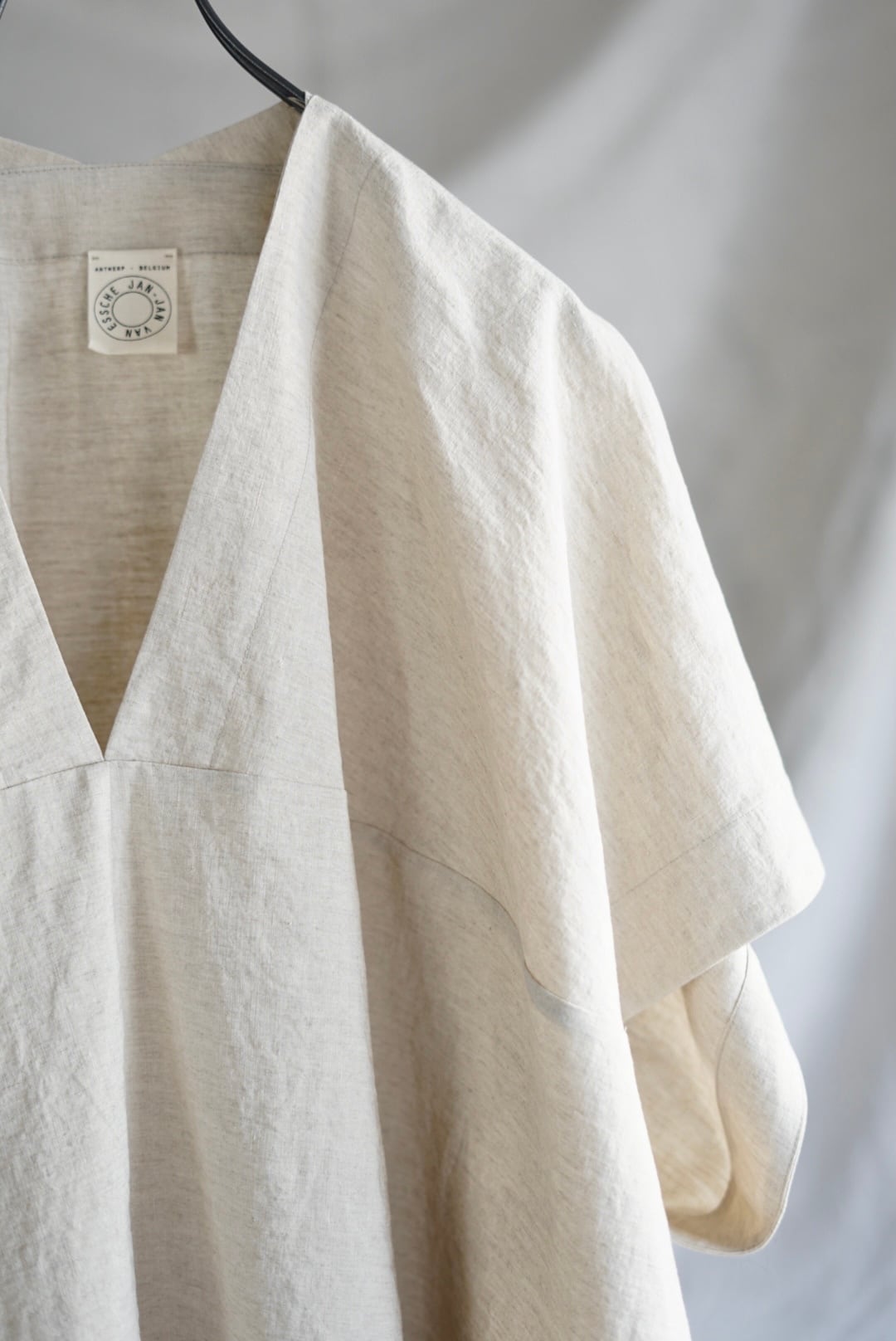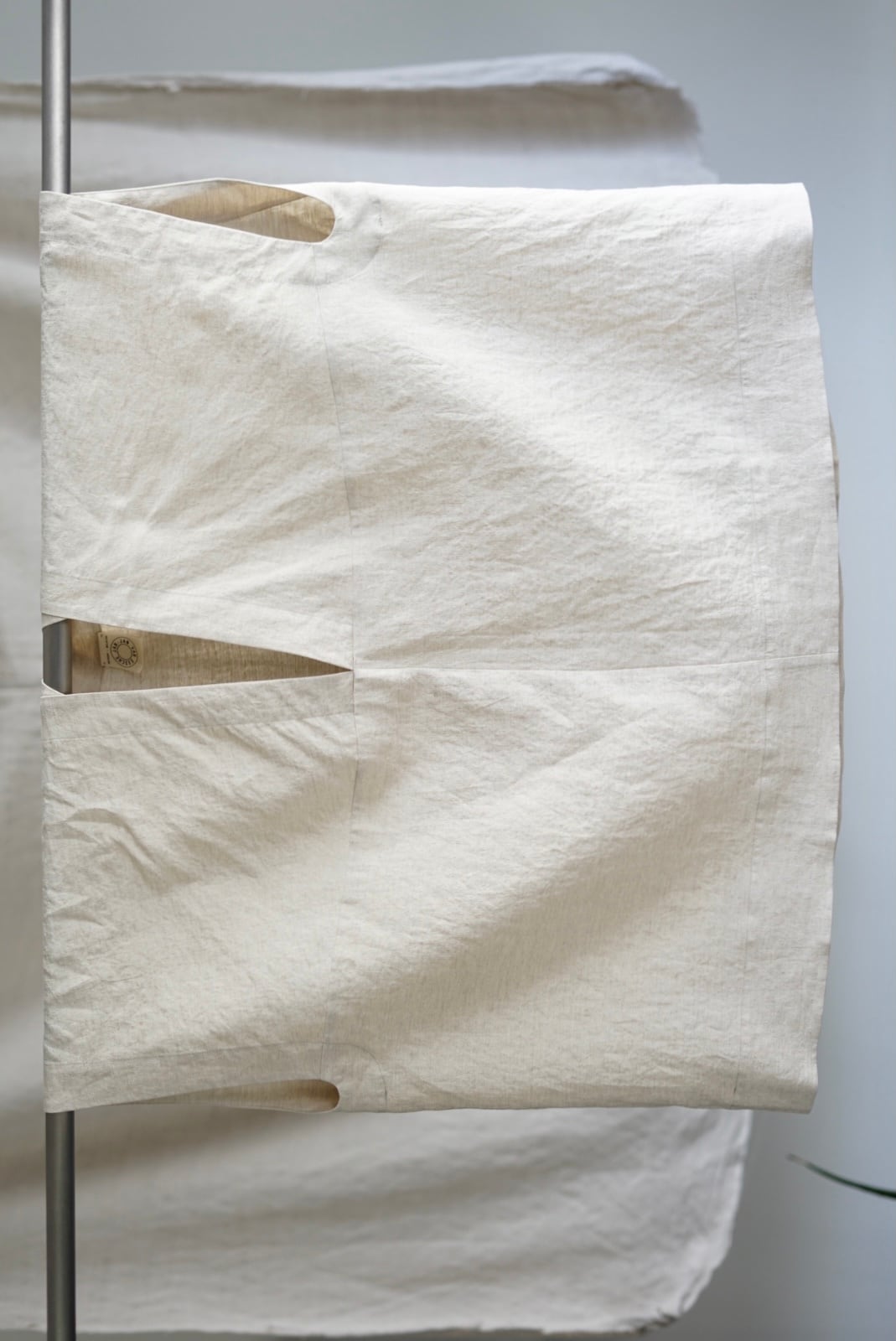 東洋と西洋のカルチャーを纏ったチュニック#27。リネンにシルクを混ぜ込んだ素材の肌当たりの良い生地はカットソーの感覚で着用が出来るアイテム。クルーネックのレイヤードでカジュアルに、タンクトップで色気を出すのもよし。シームレスな製法で落ち感とドレープが綺麗に生み出されるプルオーバーアイテムです。
