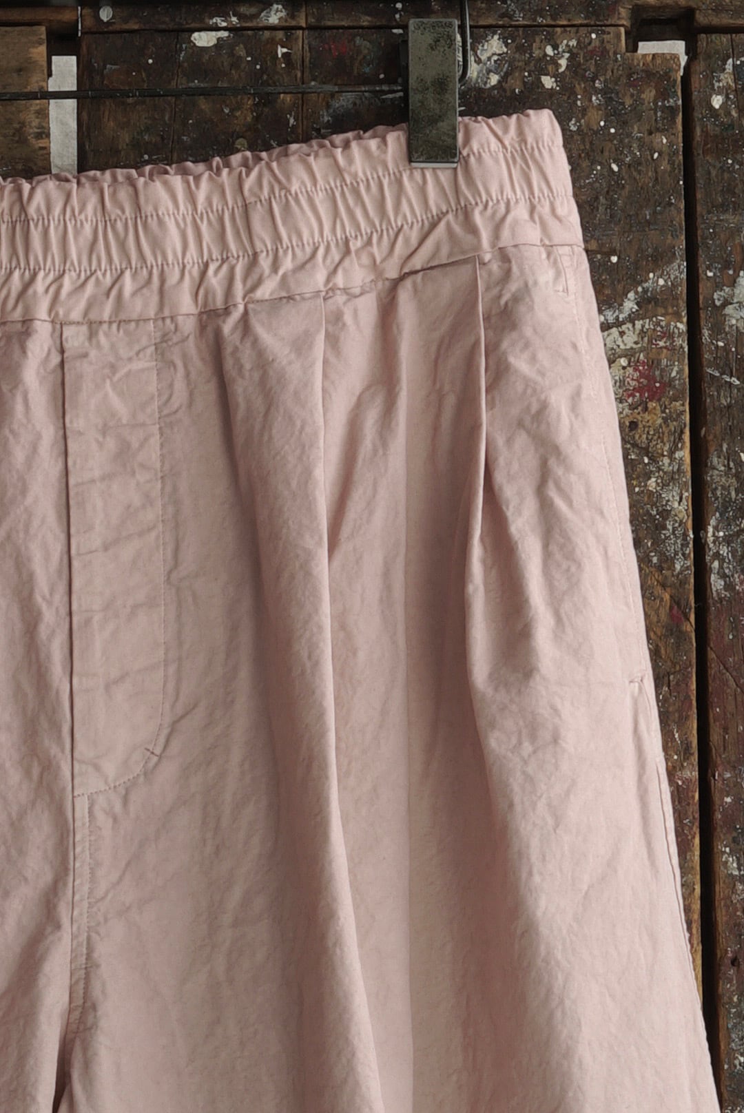コレクションの中でレギュラーデザインの「BRAGONI」。ワイドフィット&僅かにショートレングスのシンプルなトラウザーズ。リラックスなシルエットにモードな雰囲気が共存するアイテムです。高密度でハリのあるコットンファブリック。製品染め、春の花を模したペタルピンク。クラシカルなダブルの裾仕上げ。大振りの外付けバックポケット。ウエストギャザー&ドローコード仕様。ユニセックス。