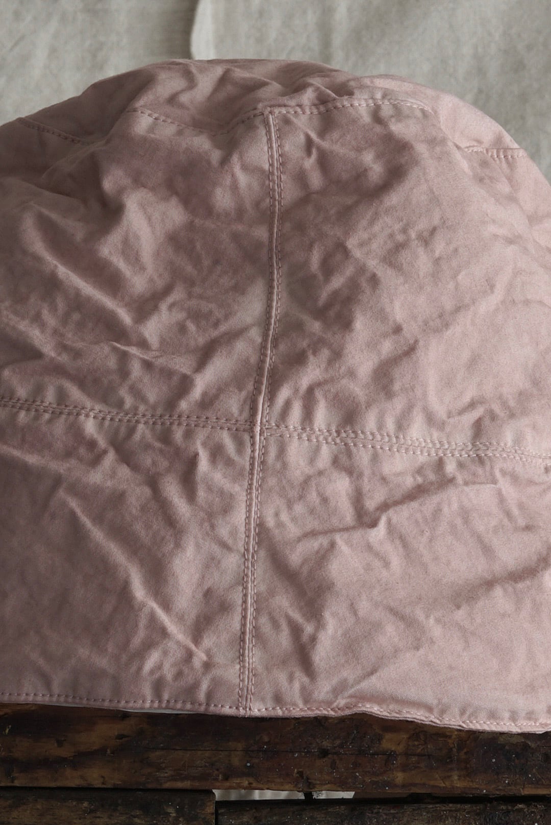 5パネルのボブハット。高密度でハリのあるコットンファブリック。製品染め、春の花を模したペタルピンクカラー。裏張りはドライタッチコットンを採用しており、肌当たりが爽やかで快適な使用感です。どこかモードなデイリーヘッドウェア。ユニセックス。