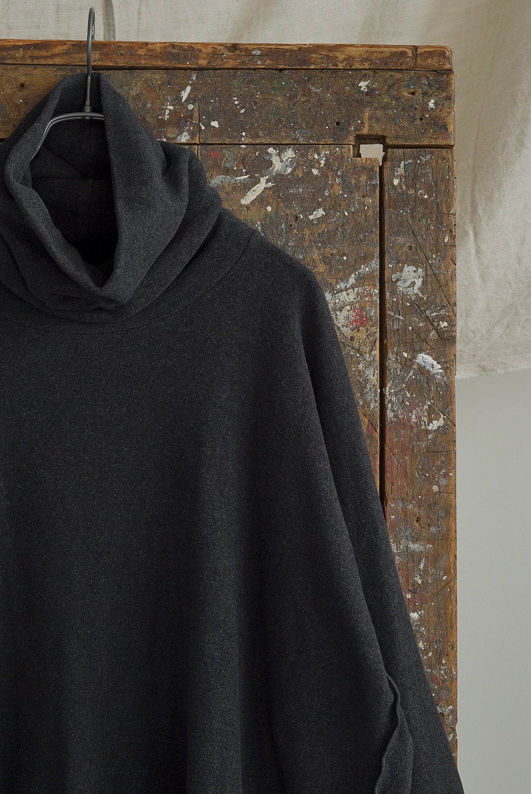 2つのパネルを前後中央で合わせて構成された、保温力を備えるカットソーライクなニッティング。ボリュームのあるオフタートル。"ALBUM DI FAMIGLIA"ではキッズからアダルトコレクションまでレギュラーで使用される、ウールフリーのコットン混が気持ち良いもちっとした質感のファブリック。サイド・ヘムはロック処理のミニマルでラフなデザイン。保温力を備えるカットソーライクなデザイン。ソフトかつクールなスレートカラー。ワイドフィット&ショートレングス、メンズはレイヤードでバランスを。ユニセックス。